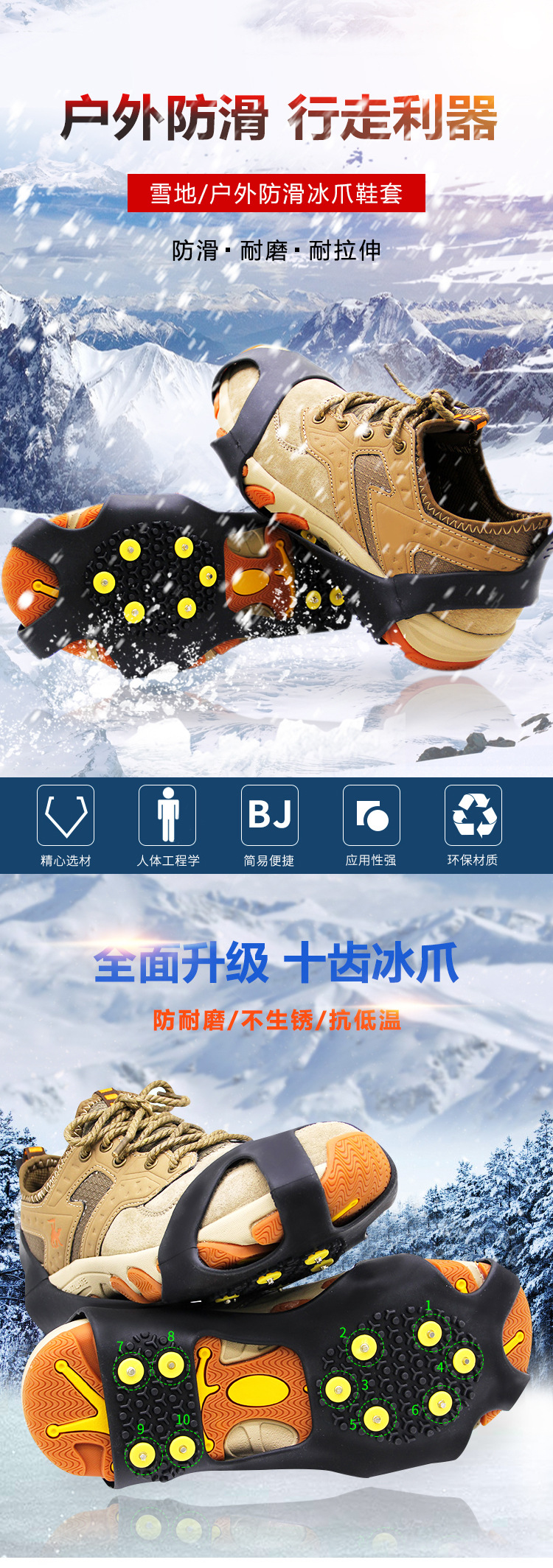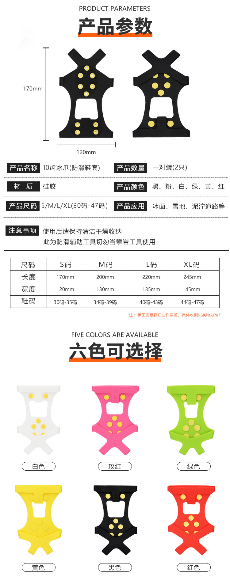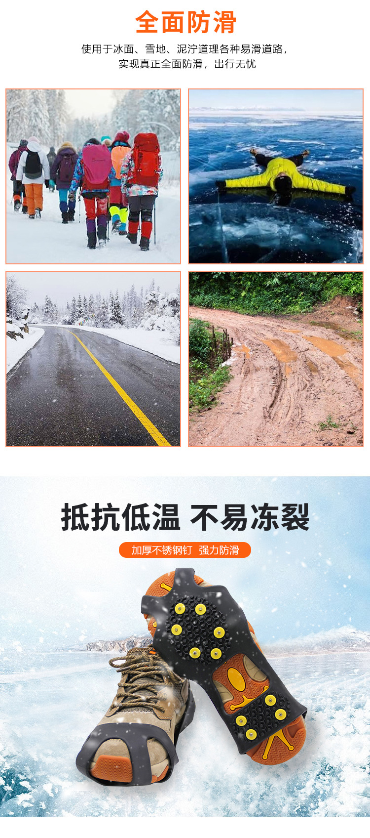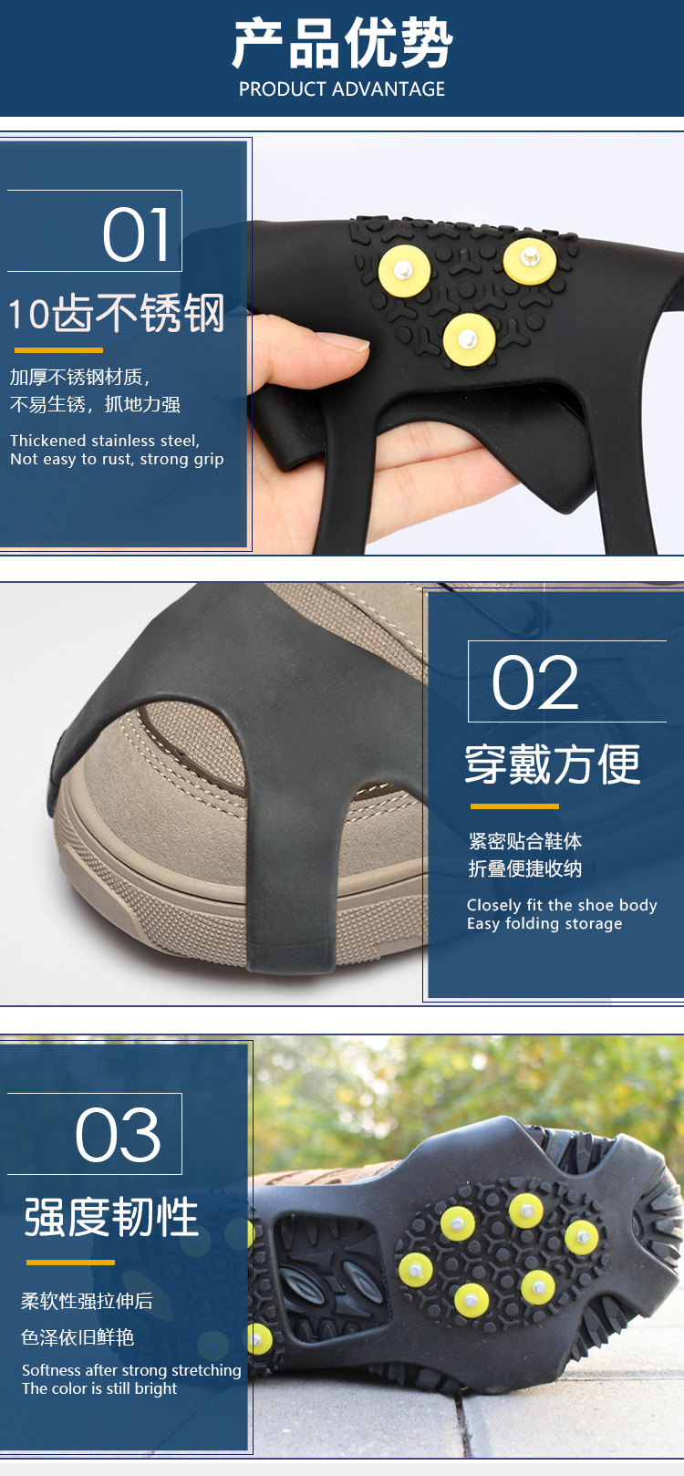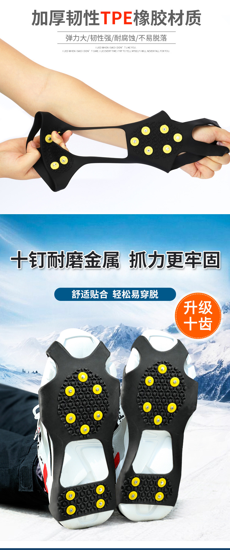 厂家现货10钉硅胶防滑冰爪 10齿雪地冰面防滑鞋套硅胶攀岩冰鞋