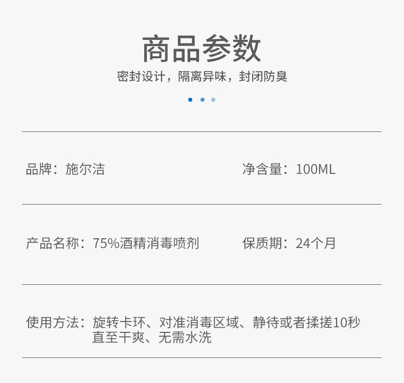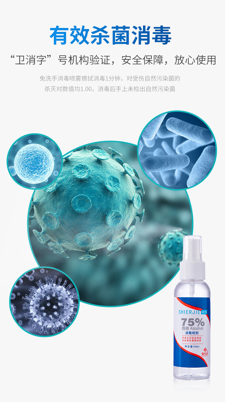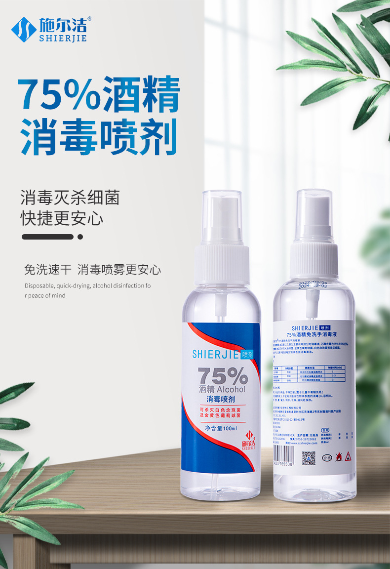 Спрей с 75% алкоголем 100мл, дезинфекция без смывания, портативный, оптовая продажа