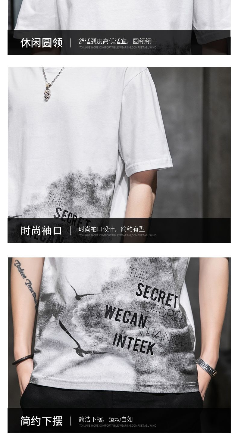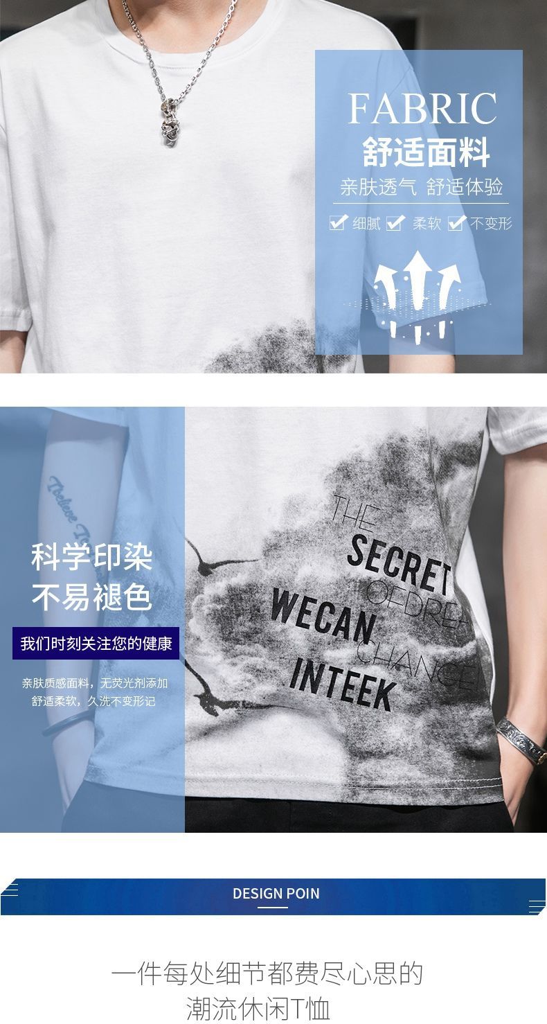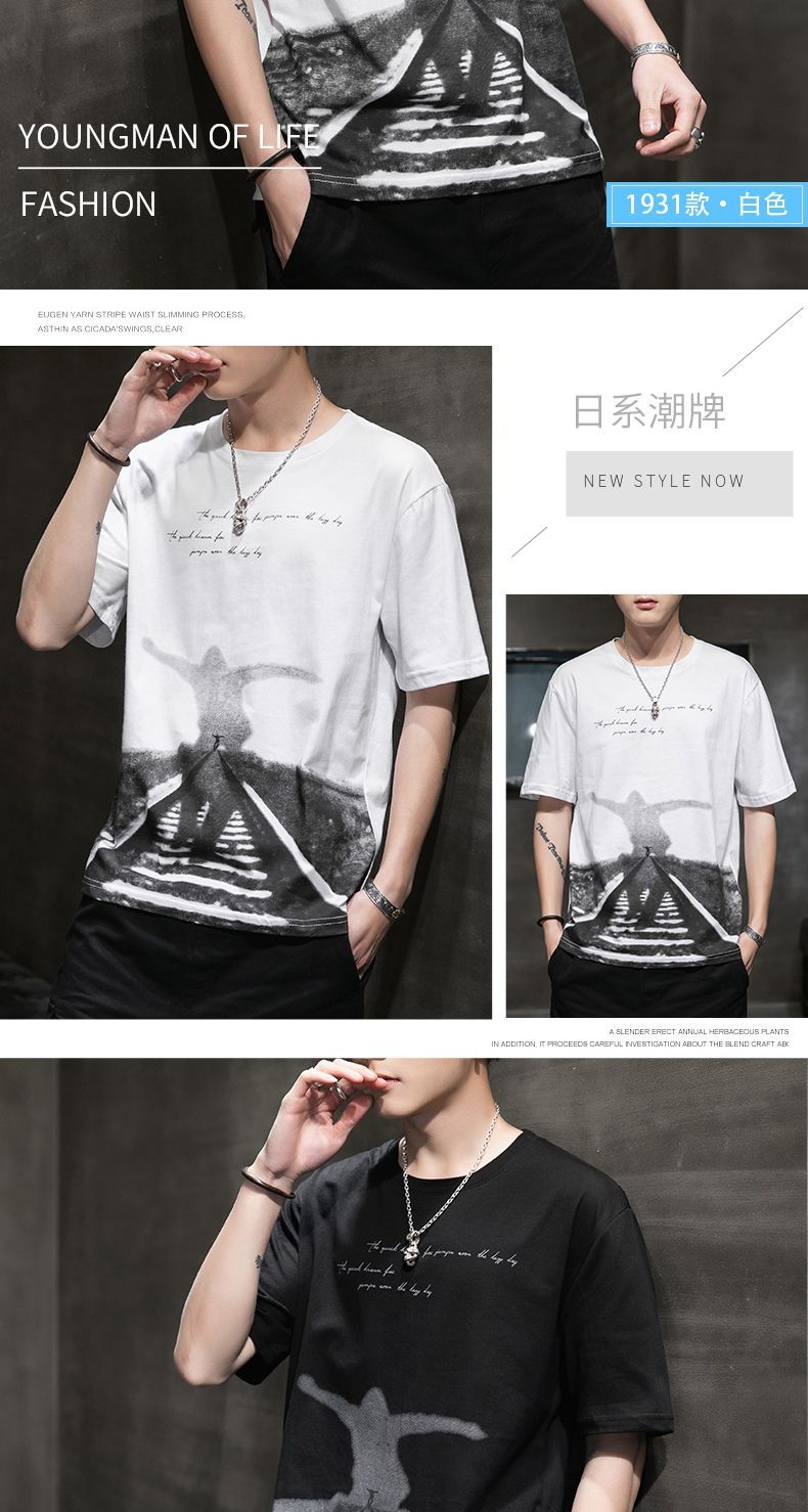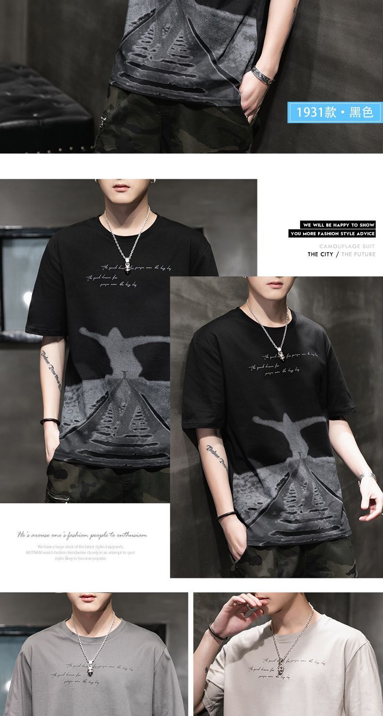 Мужская футболка с коротким рукавом летняя модная свободная стильная молодежная рубашка с половинным рукавом