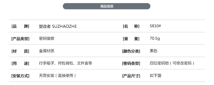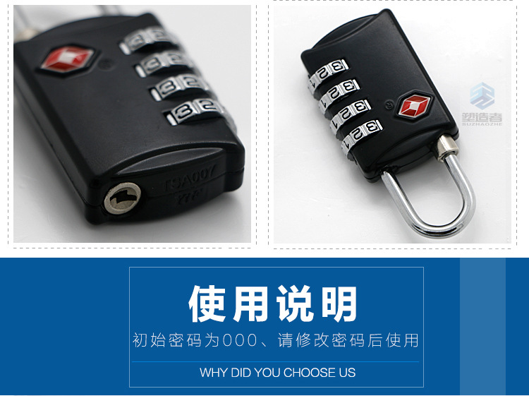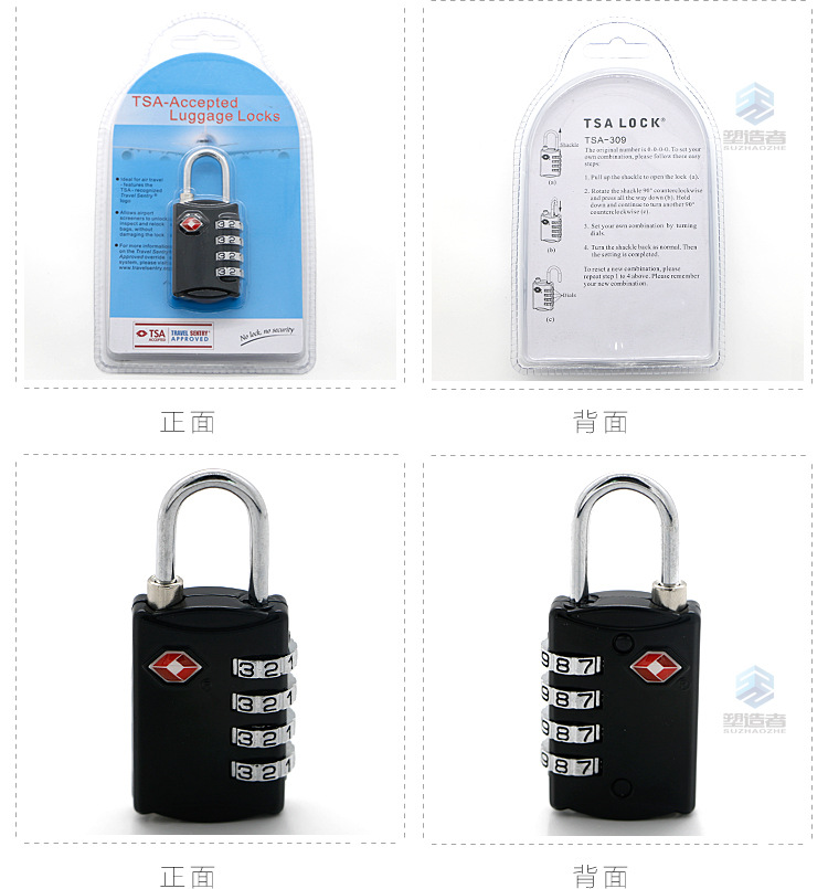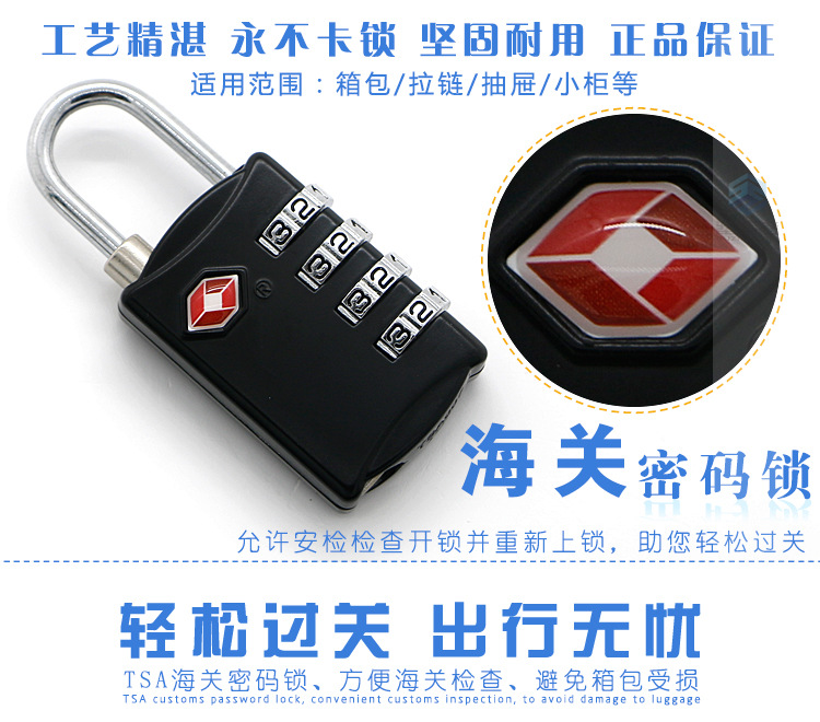 旅游用品tsa海关锁 挂锁 tsa309海关密码锁 多用途四位密码锁黑色