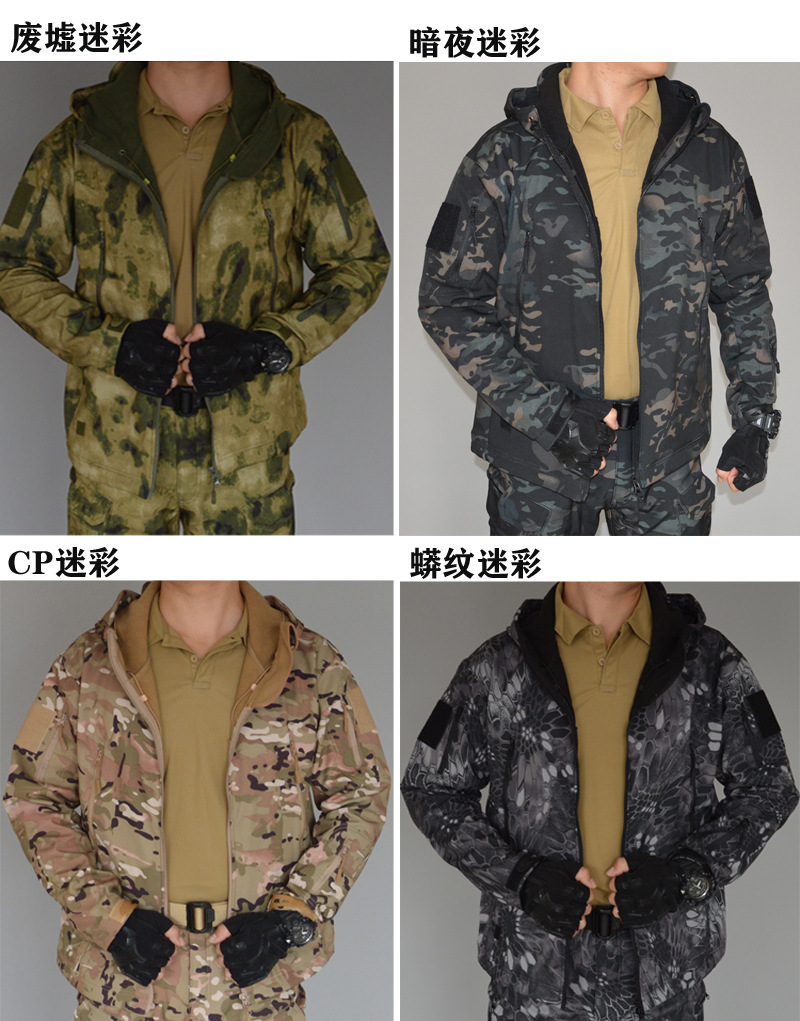 Куртка осень-зима из мягкой ткани с акульей кожей, мужская флисовая, водонепроницаемая, ветронепроницаемая, трехвальная камуфляжная горная куртка