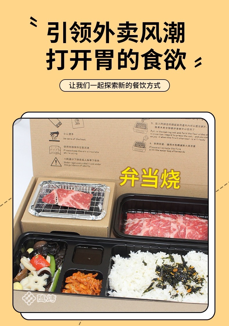 Оптовая угольная печь для барбекю, ланч-бокс на одного человека, упаковка для выноса, мини-угольная печь