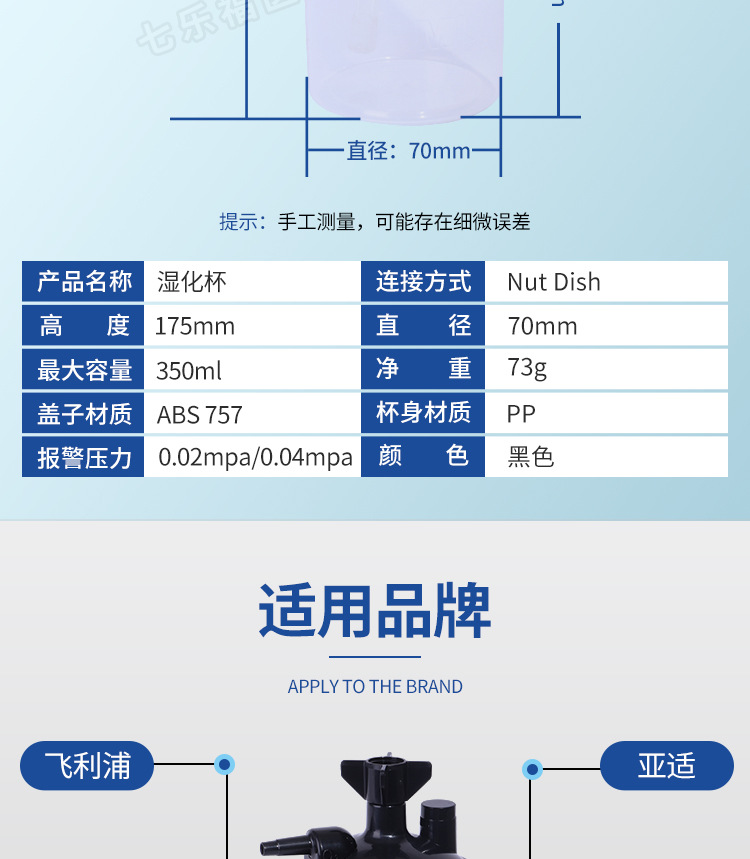 Увлажнительная чашка для концентратора кислорода водосборная бутылка 250мл Yuyue увлажнительная бутылка аксессуары фильтрующая чашка совместима с Yuyue