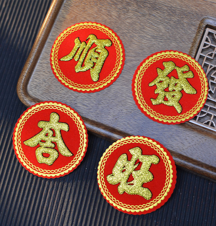 Мини наклейки с символом удачи, самоклеящиеся, фланелевые, для празднования Средины осени и Весны, аксессуары для фестиваля фонарей