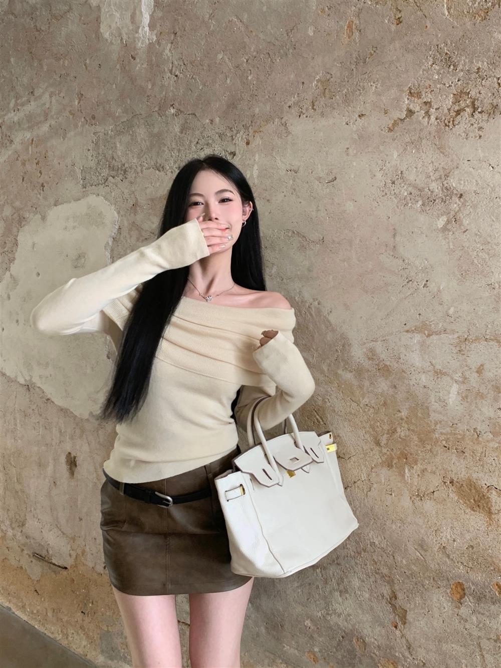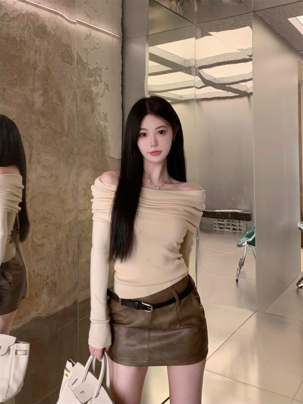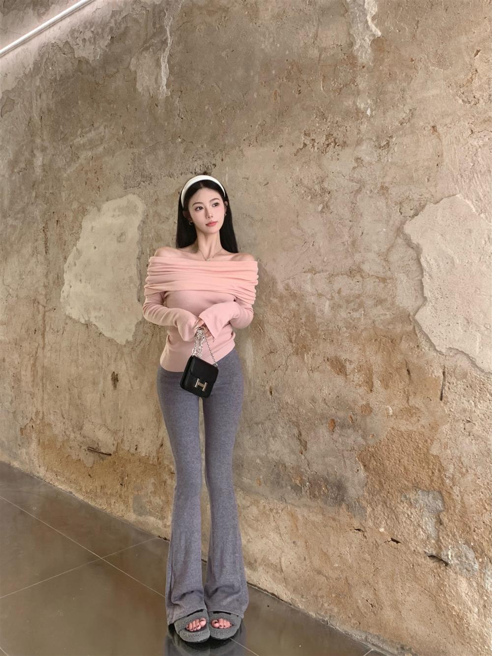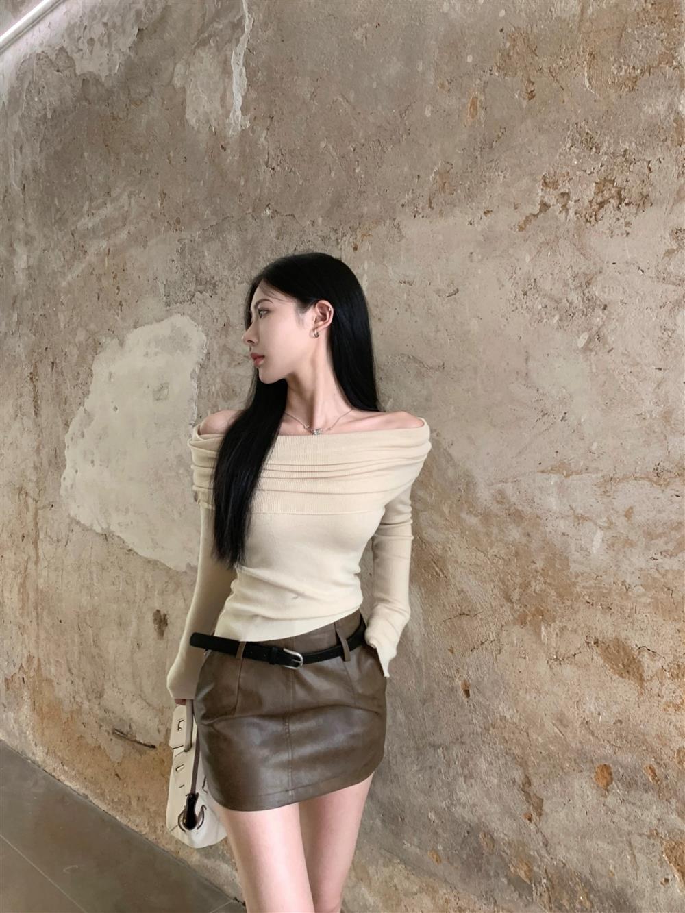 Теплый свитер с открытыми плечами и воротником, короткий, в нежном стиле, облегающий, с длинными рукавами, базовая футболка