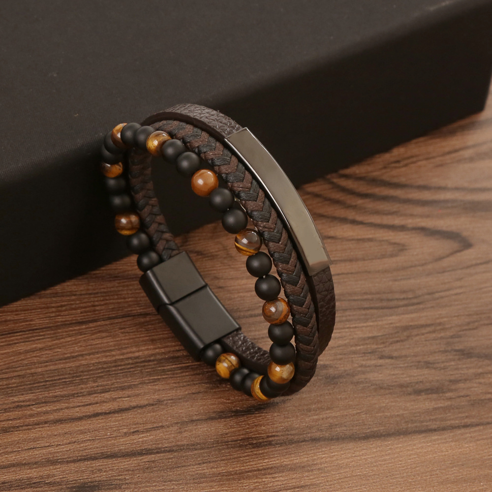 Простой кожаный браслет для мужчин, ручная работа, с натуральными камнями, оптовая продажа