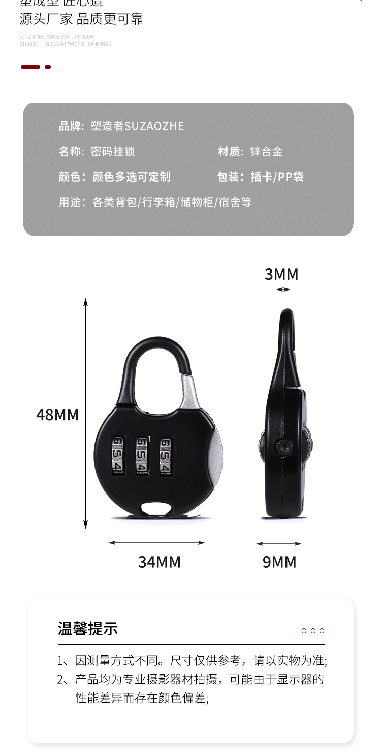 锌合金密码挂锁迷你柜子柜门锁家用背包行李箱学生宿舍密码小挂锁