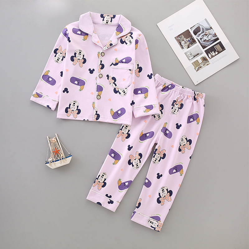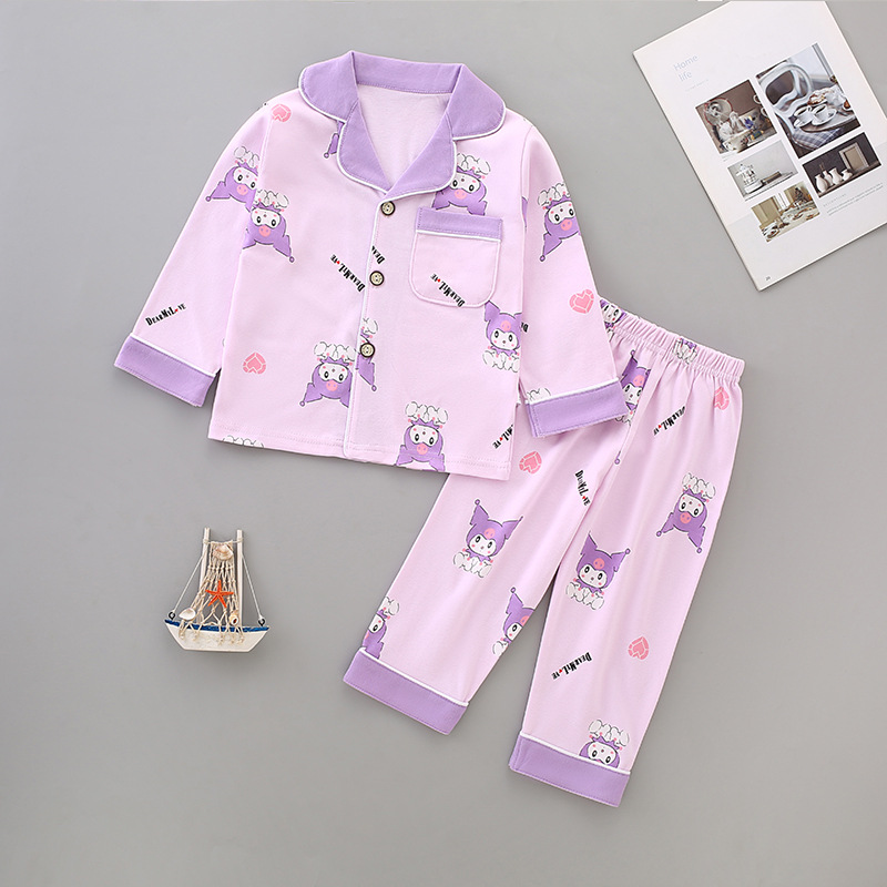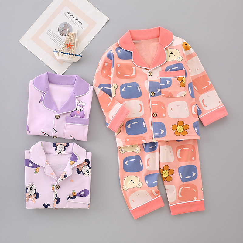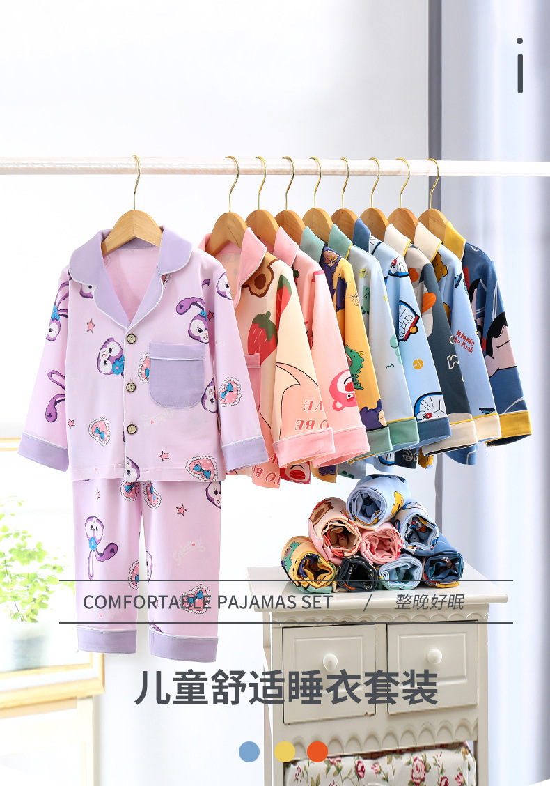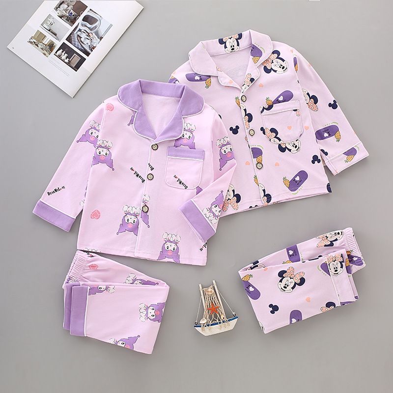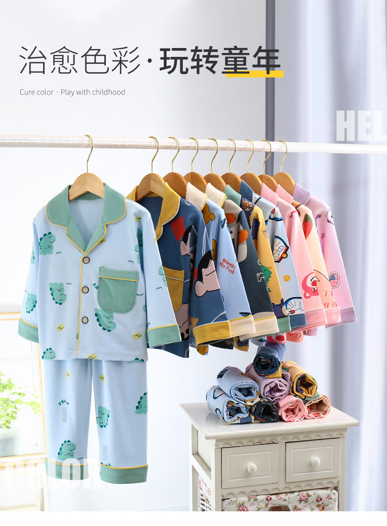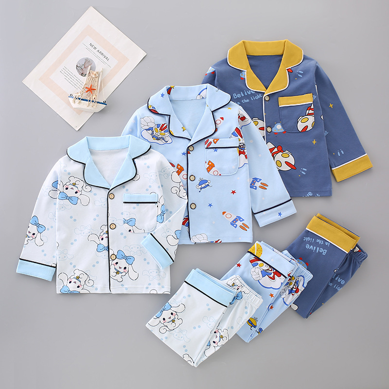 Новый кардиган для детей весна-осень, домашний комплект, пижамы с мультяшным принтом для девочек, корейский стиль для мальчиков