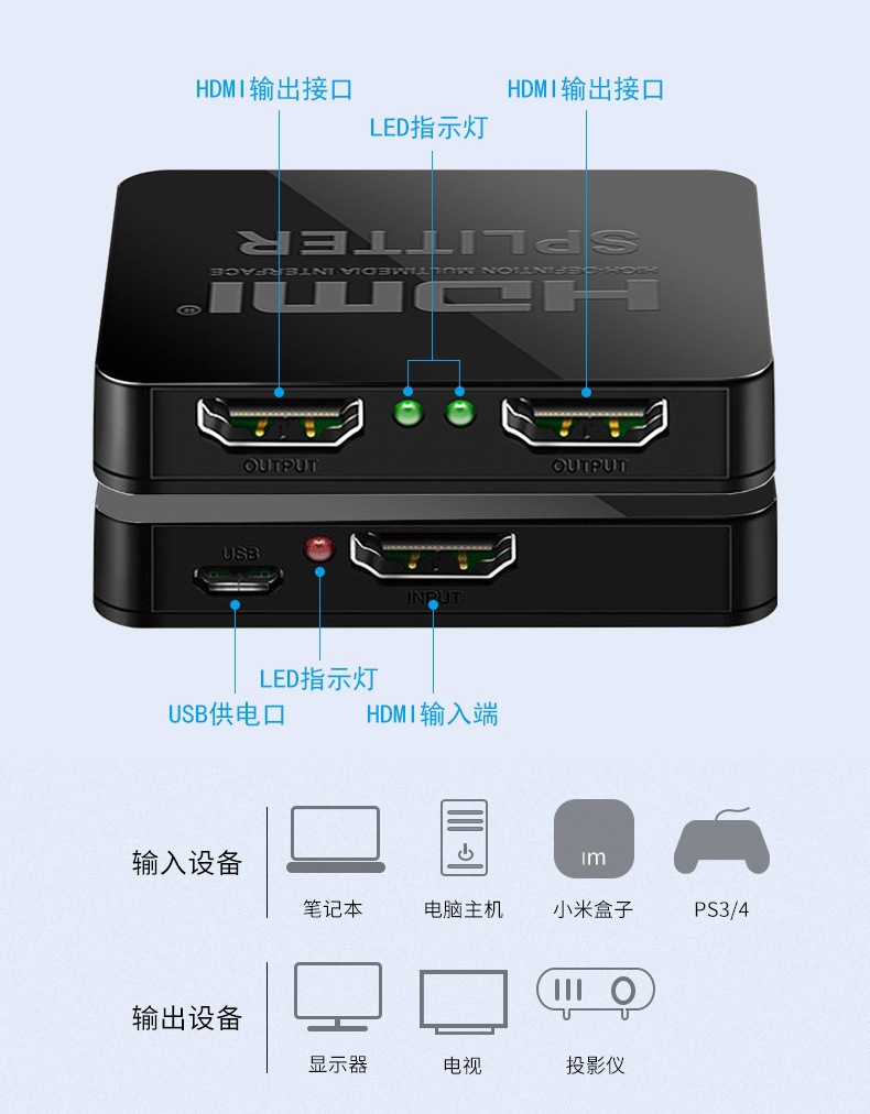 HDMI сплиттер 4K один вход два выхода монитор двойной экран одновременное отображение ноутбук HDMI сплиттер многоэкранный