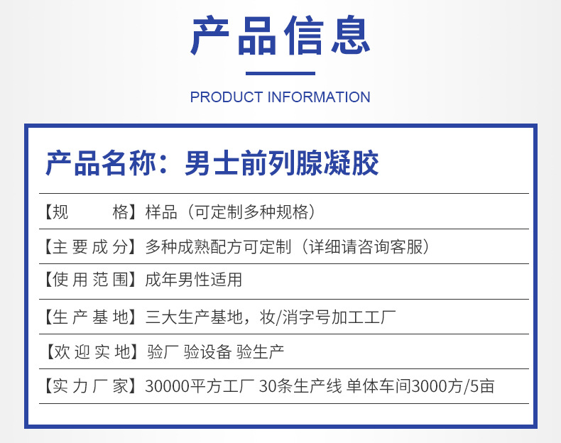 Номер товара Male Gel Men's Private Gel Prostate Gel OEM/ODM OEM OEM OEM Customized Processing Factory