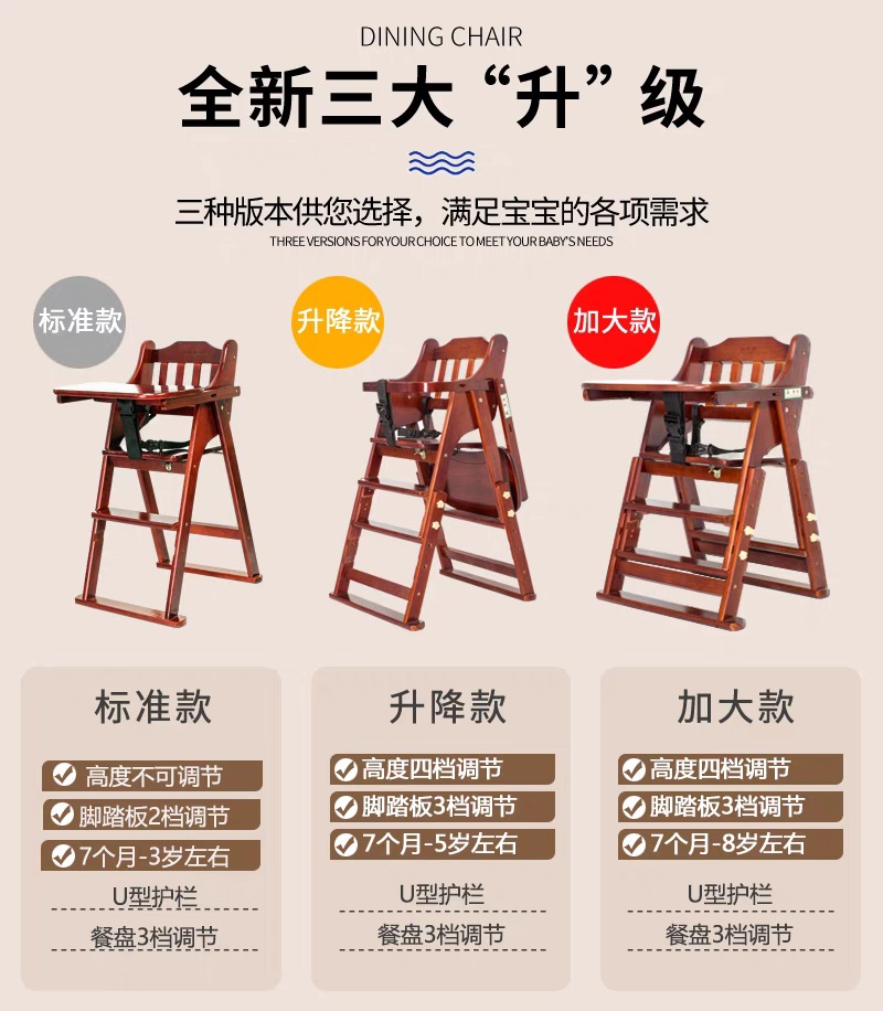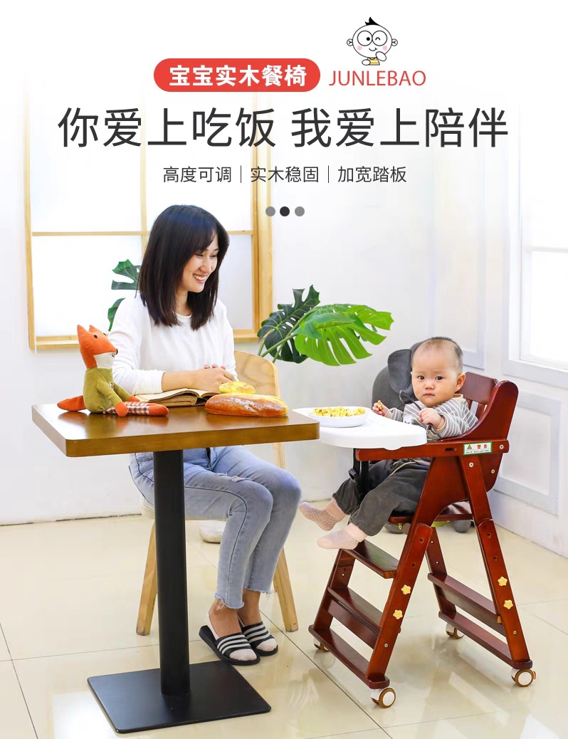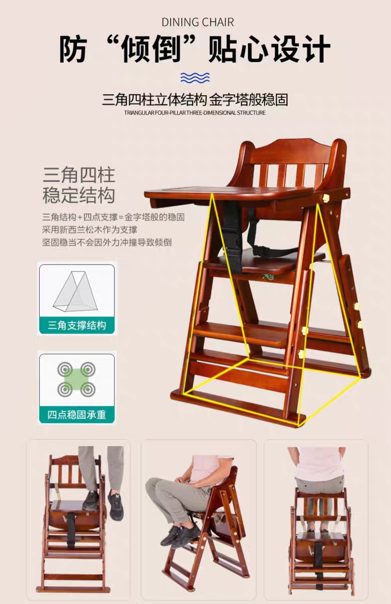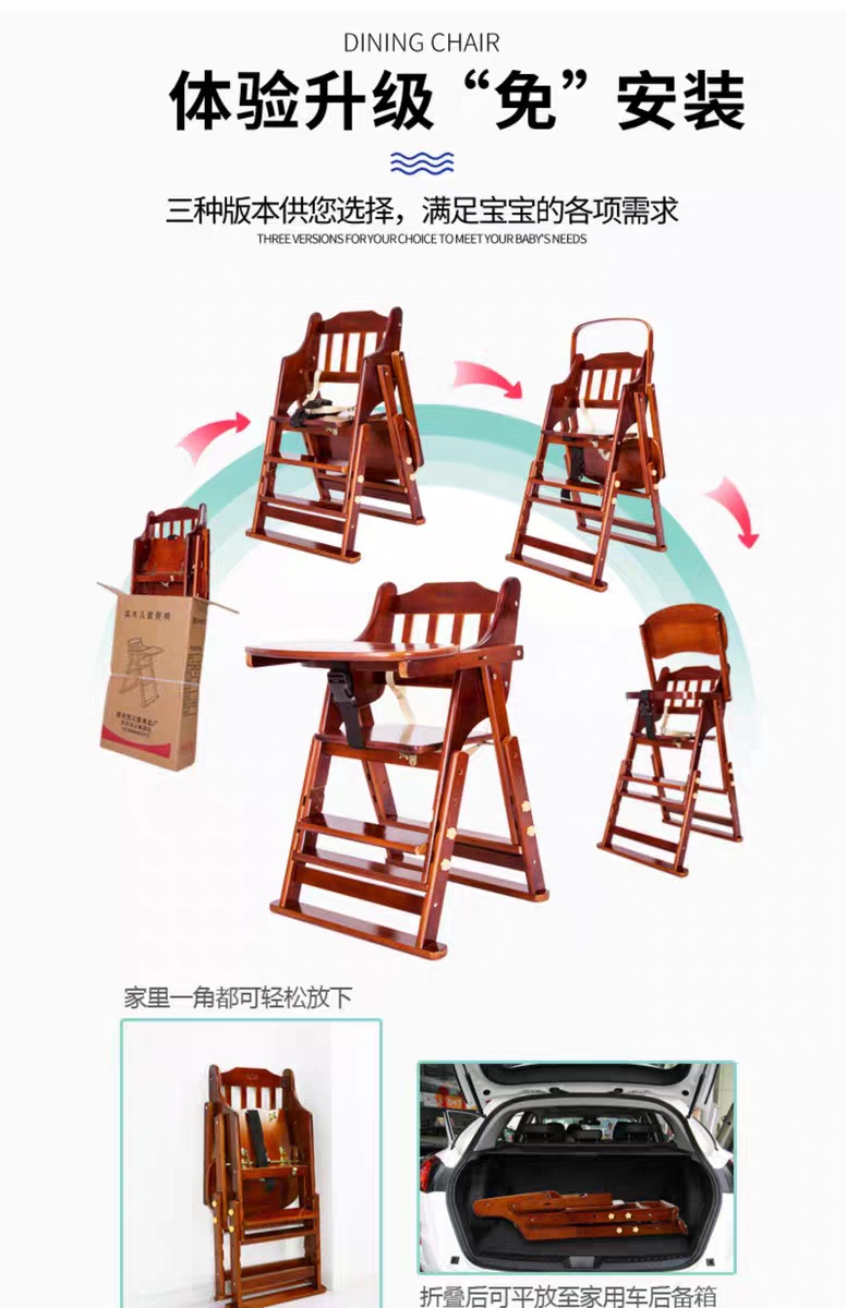 Кросс-бордерный детский обеденный стул, портативный складной стул из массива дерева