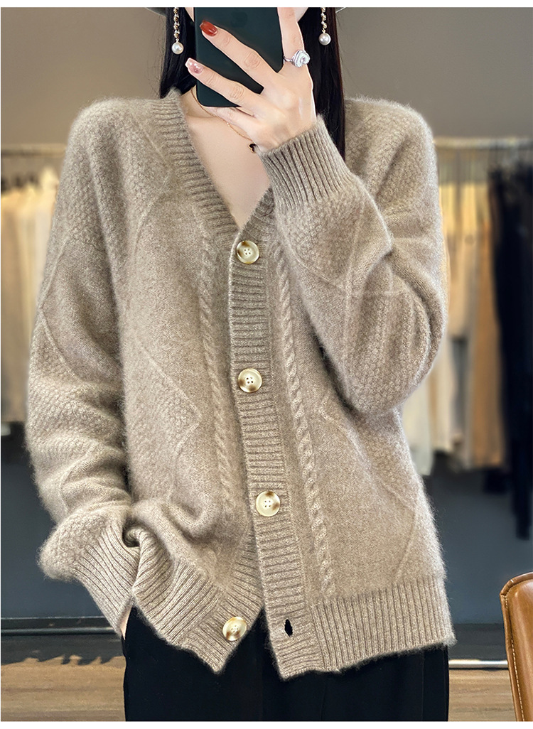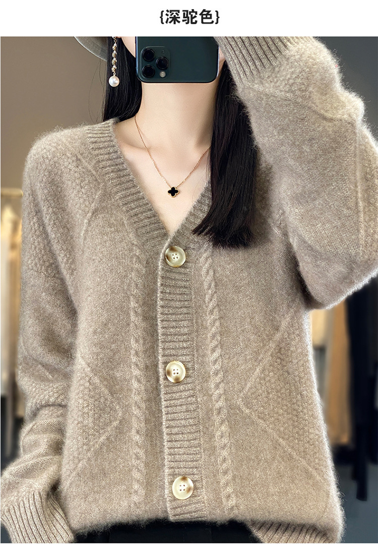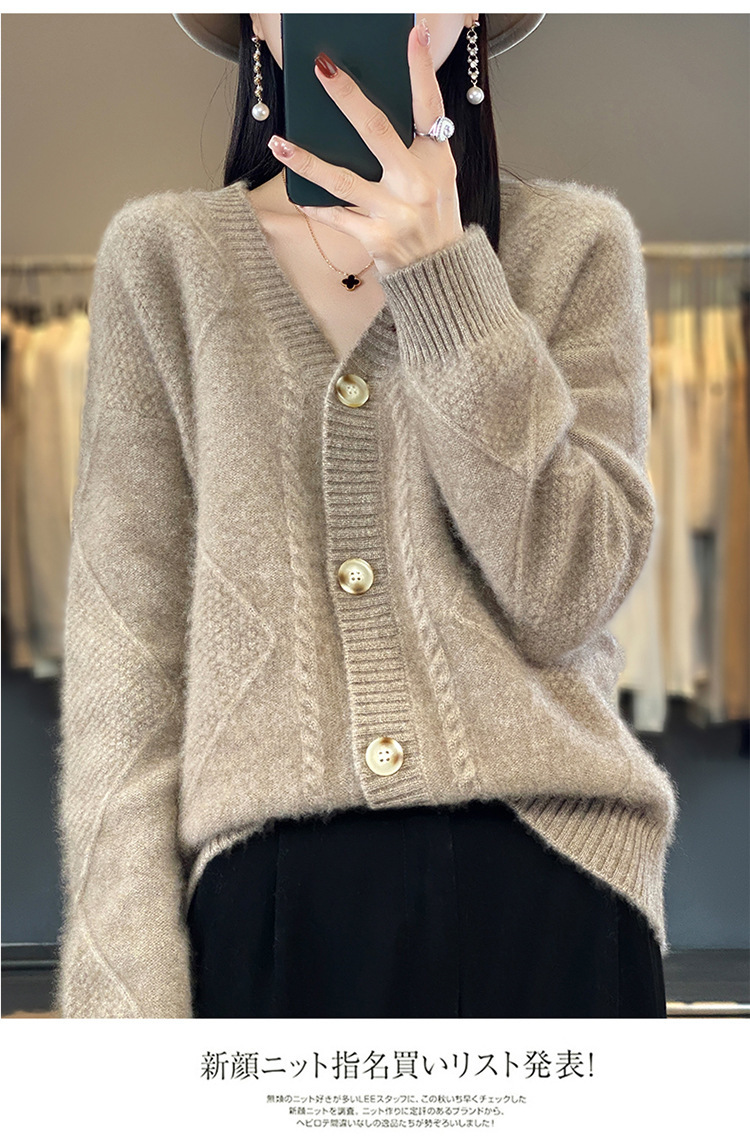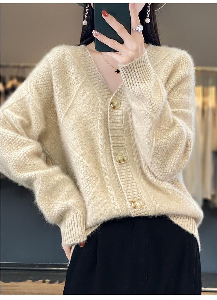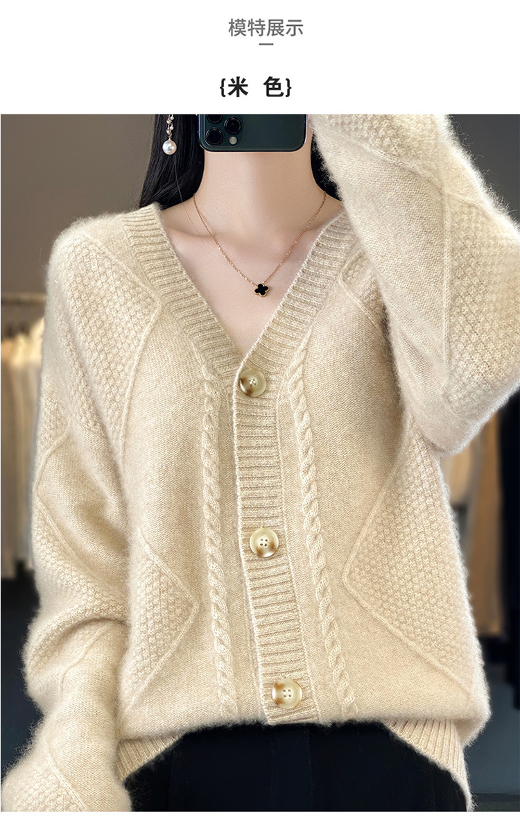 23新款女春秋羊毛开衫V领宽松厚款毛衣重工针织羊绒长袖上衣外套