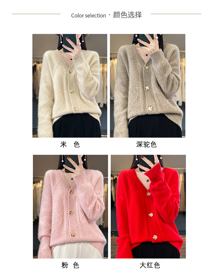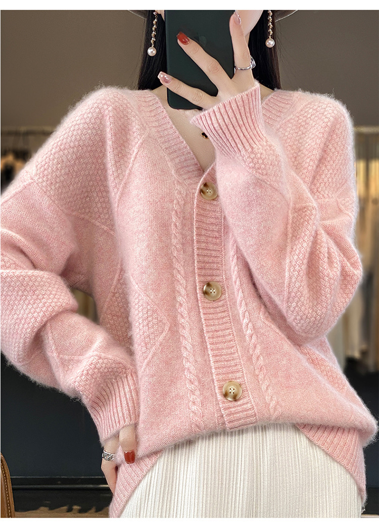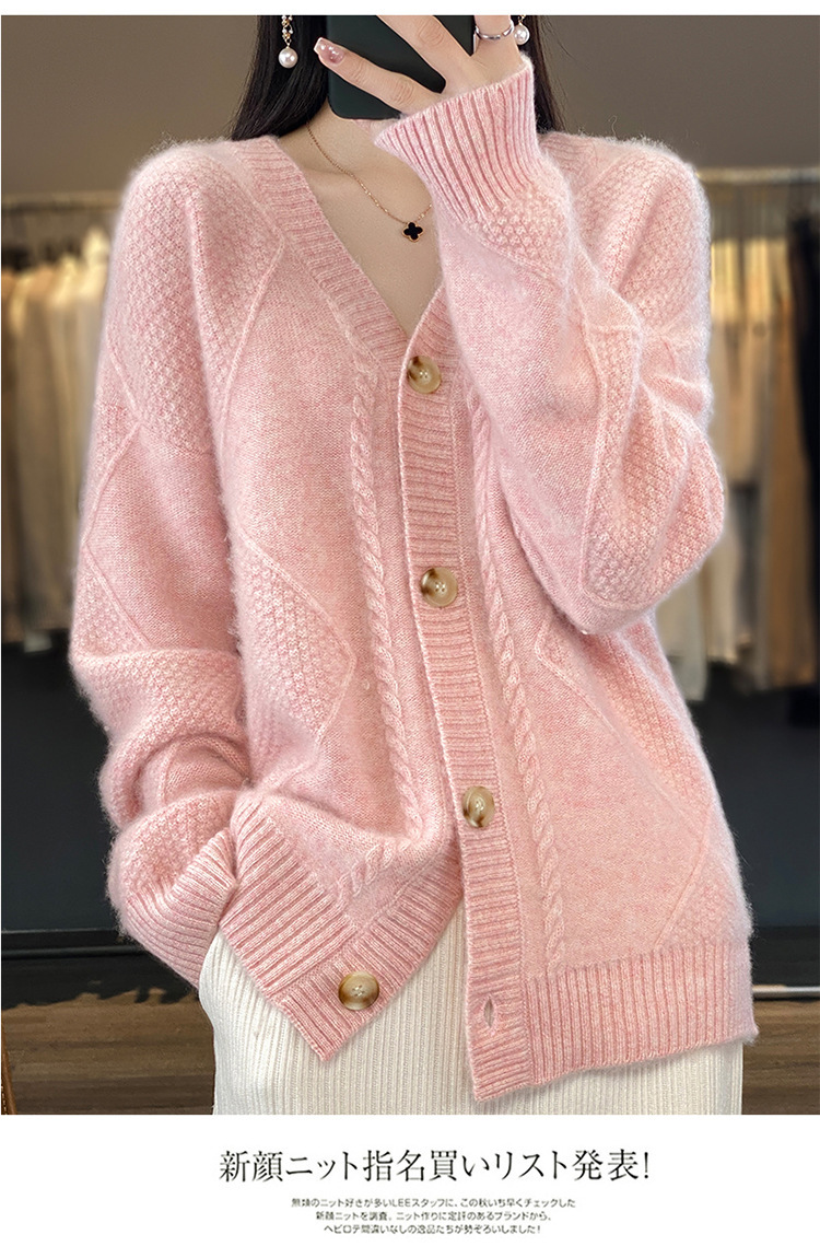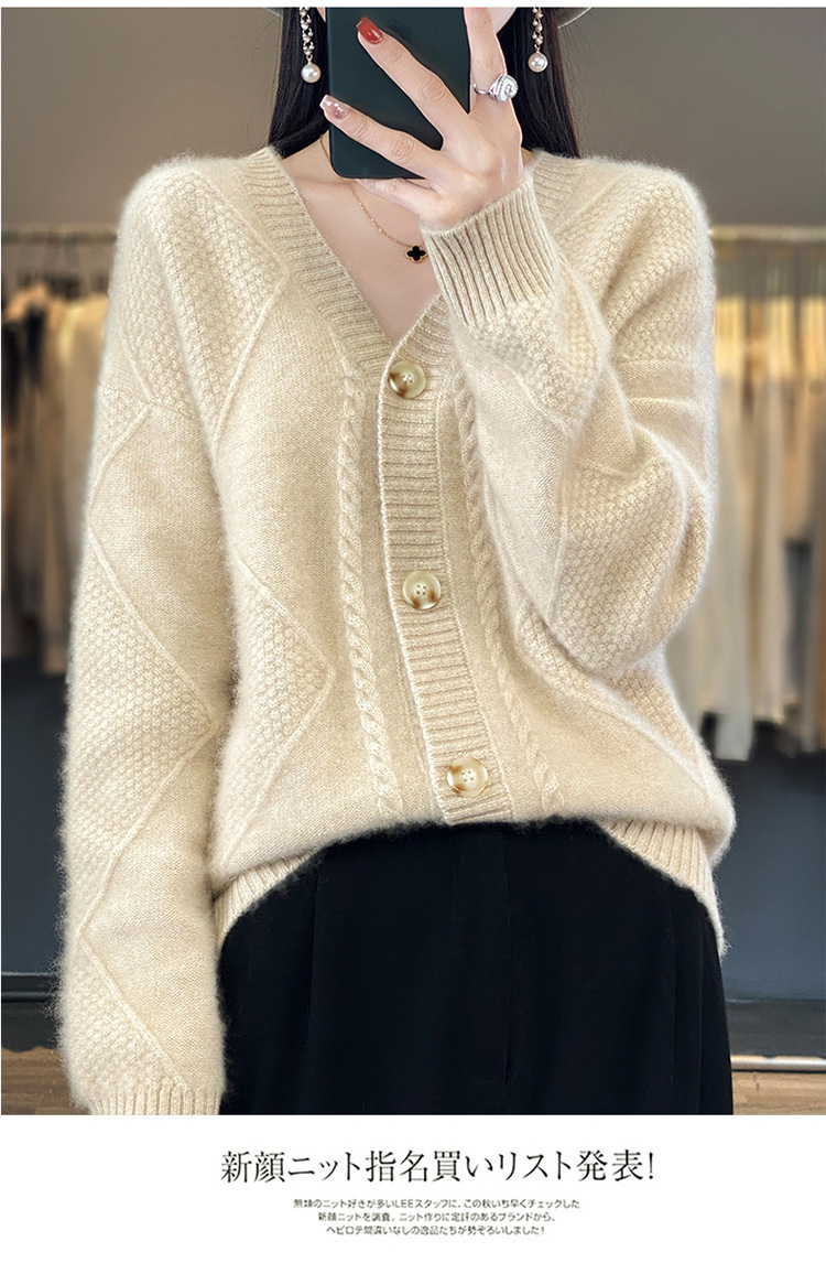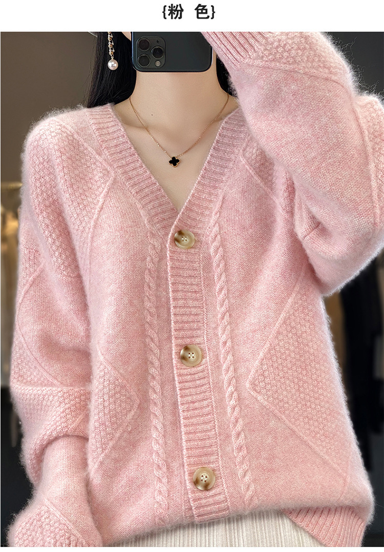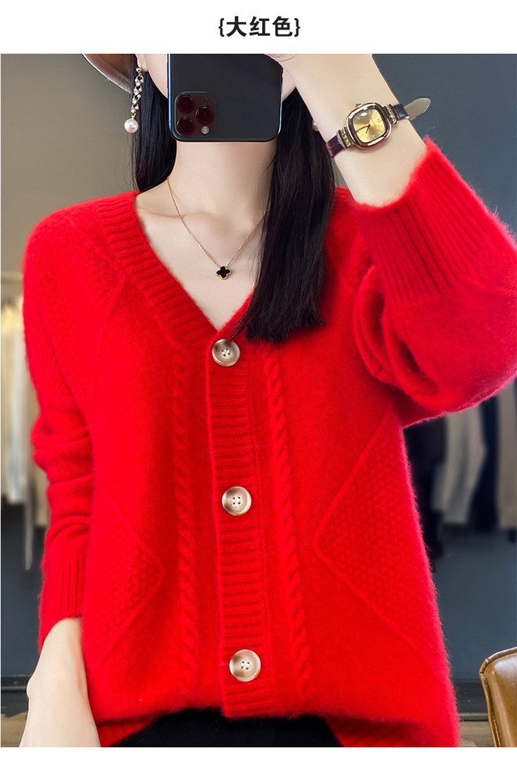 23新款女春秋羊毛开衫V领宽松厚款毛衣重工针织羊绒长袖上衣外套