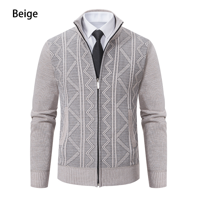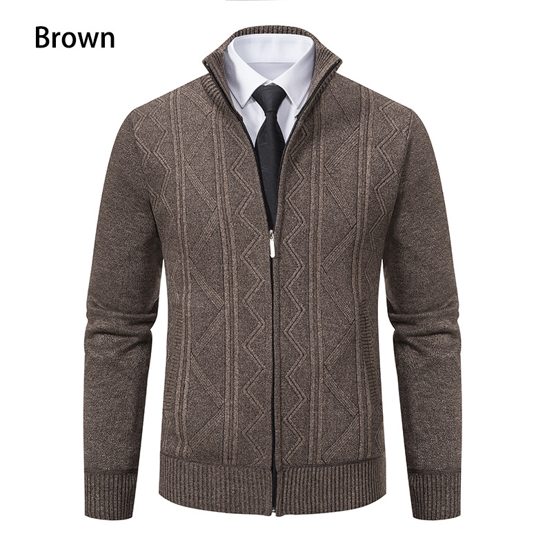 Осенне-зимний мужской свитер для среднего возраста кросс-бодер повседневный кардиган с воротником вязаный утолщенный теплый