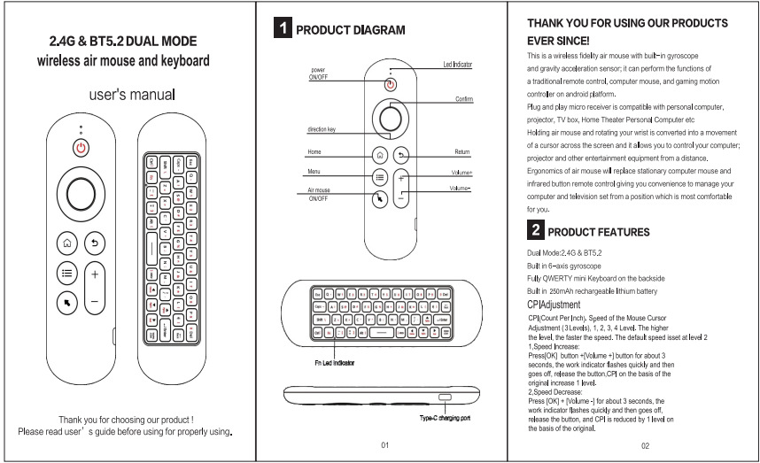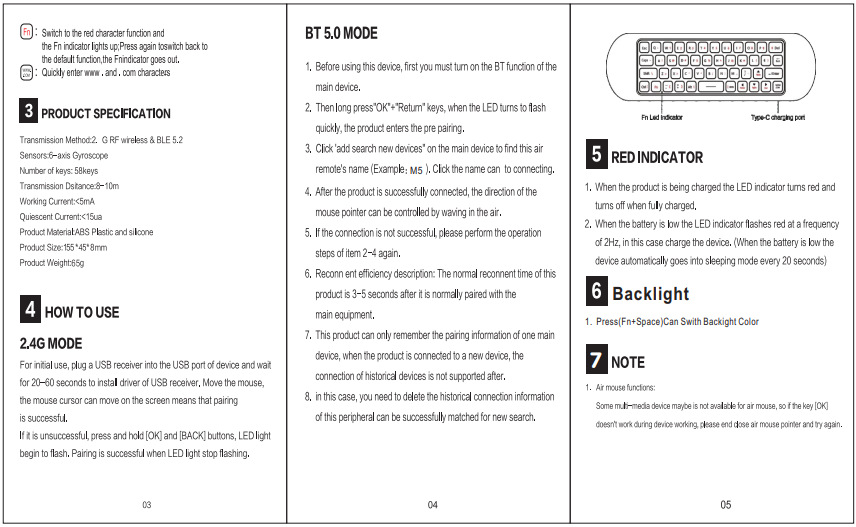 M5七彩色背光/2.4G/蓝牙无线 双模 飞鼠(语音可选)遥控器