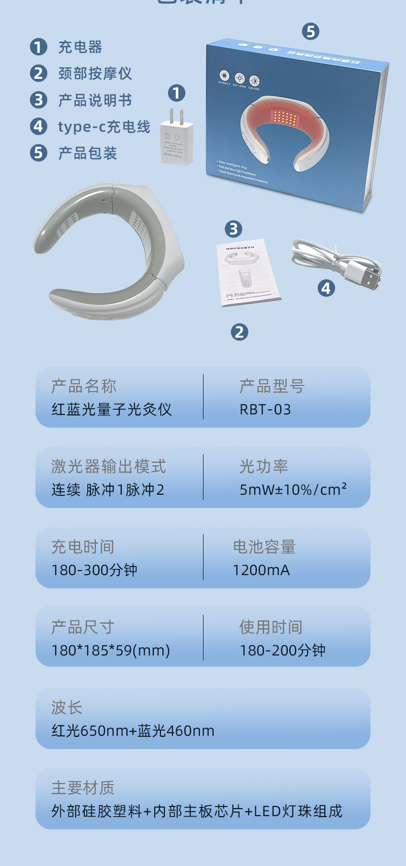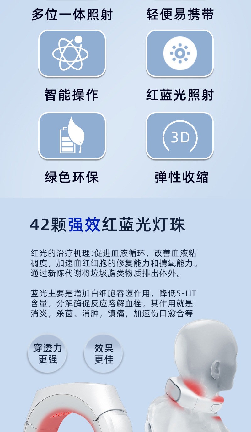 Устройство для терапии красным и синим светом, массажер с красным светом, фототерапия, устройство для световой моксибустии, противовоспалительное, анальгезирующее, способствует кровообращению, акне