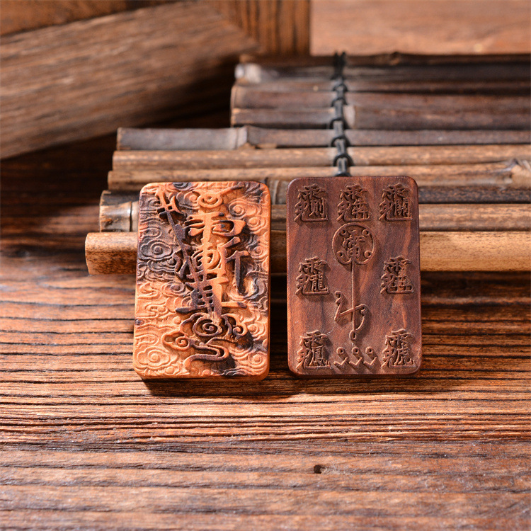 Амулет из дерева жожоба и креативного дерева, двусторонний, с золотым аксессуаром
