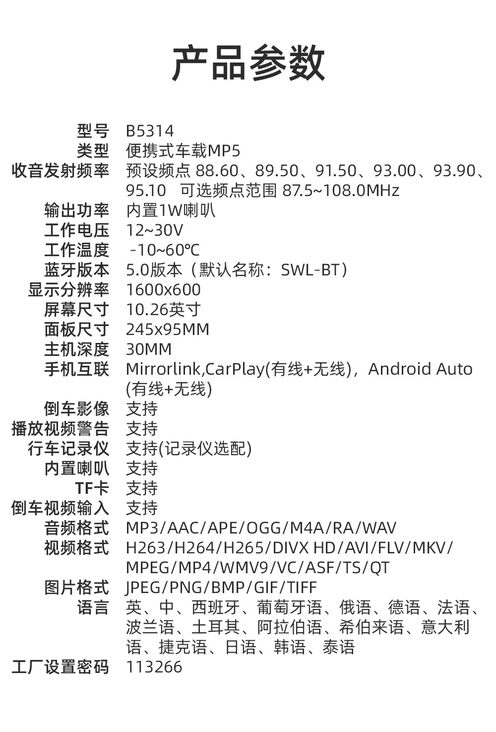 10.26 дюймовый портативный автомобильный Bluetooth MP5 плеер с HD изображением для заднего вида и беспроводным Carplay