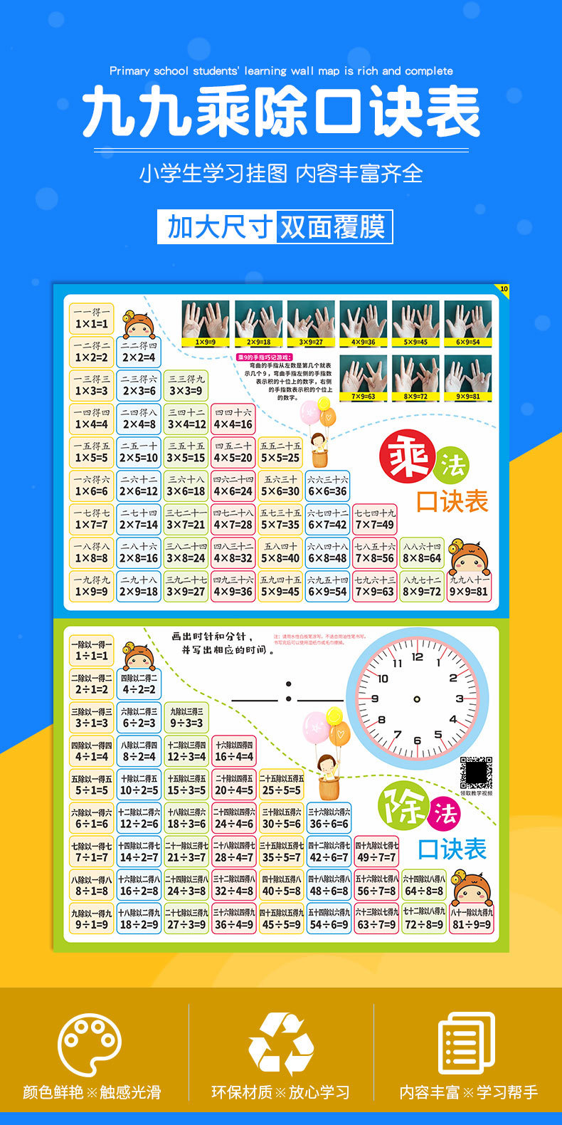 Наклейки с таблицей умножения для учеников начальной школы