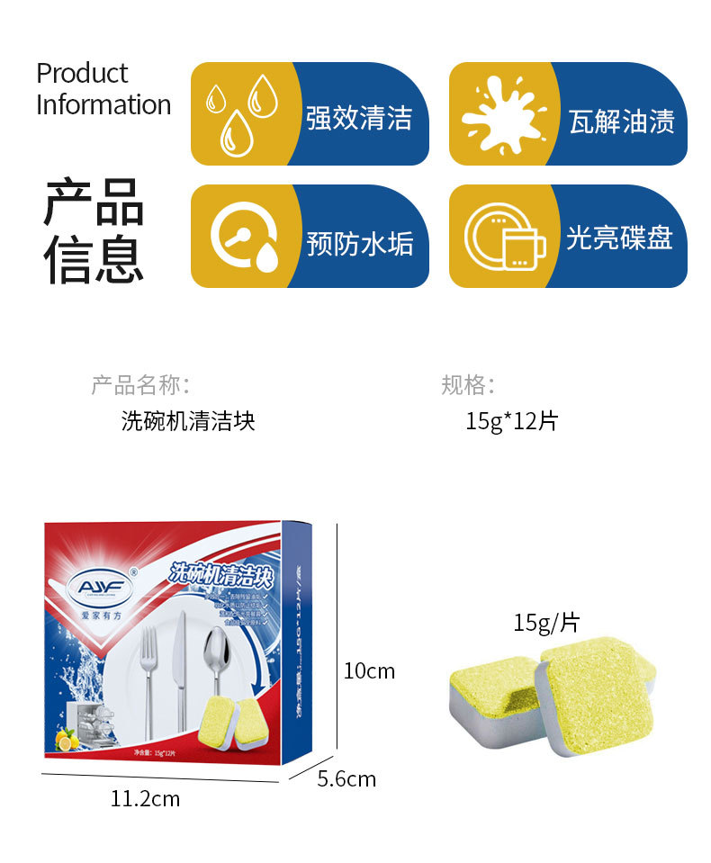 Aijia Youfang 15г * 12 штук в упаковке автоматические таблетки для мытья посуды дезодорирующие антибактериальные удаление жира