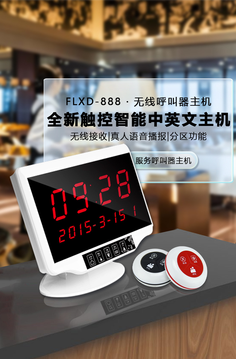 餐桌呼叫铃服务员呼唤铃点菜茶楼点按钮服务铃 无线呼叫器 足疗店咖啡厅 无线呼叫器茶楼餐厅酒店棋牌室饭店餐饮网吧包房包厢服务呼叫主机 麻将馆房间火锅店包厢呼唤餐饮 菲铃 无线呼叫器饭店网咖医院养老院呼叫器服务铃主机 咖啡厅棋牌室饭店服务呼叫铃呼叫系统 茶楼中文无线呼叫铃餐厅饭店包厢包房呼叫器棋牌室包间服务铃批发 屏显款接收主机 无线呼叫主机 网吧茶楼电竞馆无线呼叫器接收主机 无线呼叫器餐厅茶楼包厢餐酒店医院工厂台卡桌面语音服务铃 餐厅主机服务铃