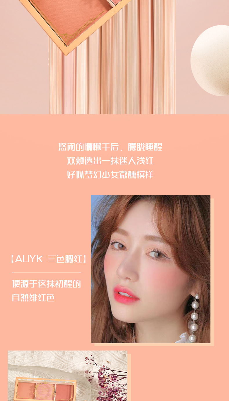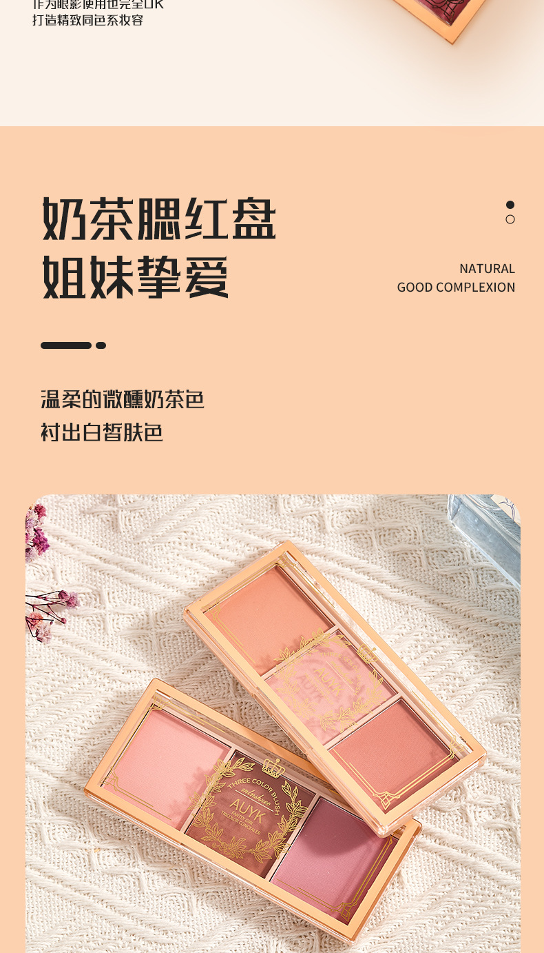 AUYK тройная палитра румян Ужин в полдень высокий сияние одна палитра кремовые румяна расширенный цвет молочный чай румяна кисть синяя