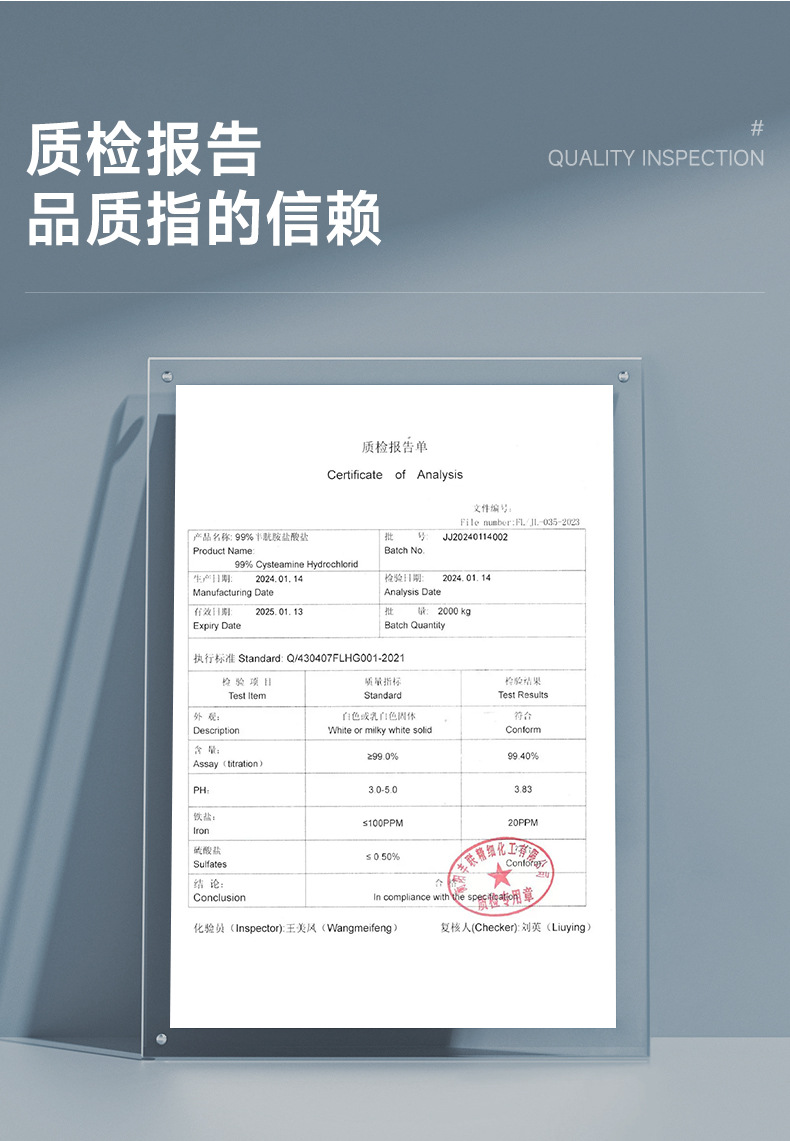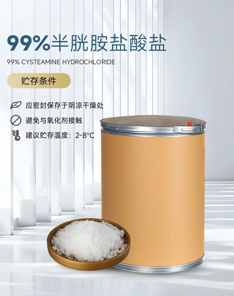 产品名:99%半胱胺盐酸盐 规格:25kg/桶 应用于染烫发原料