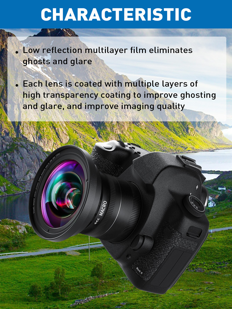 72mm 广角&微距镜头,前盖后盖、镜头袋、擦镜布,彩盒