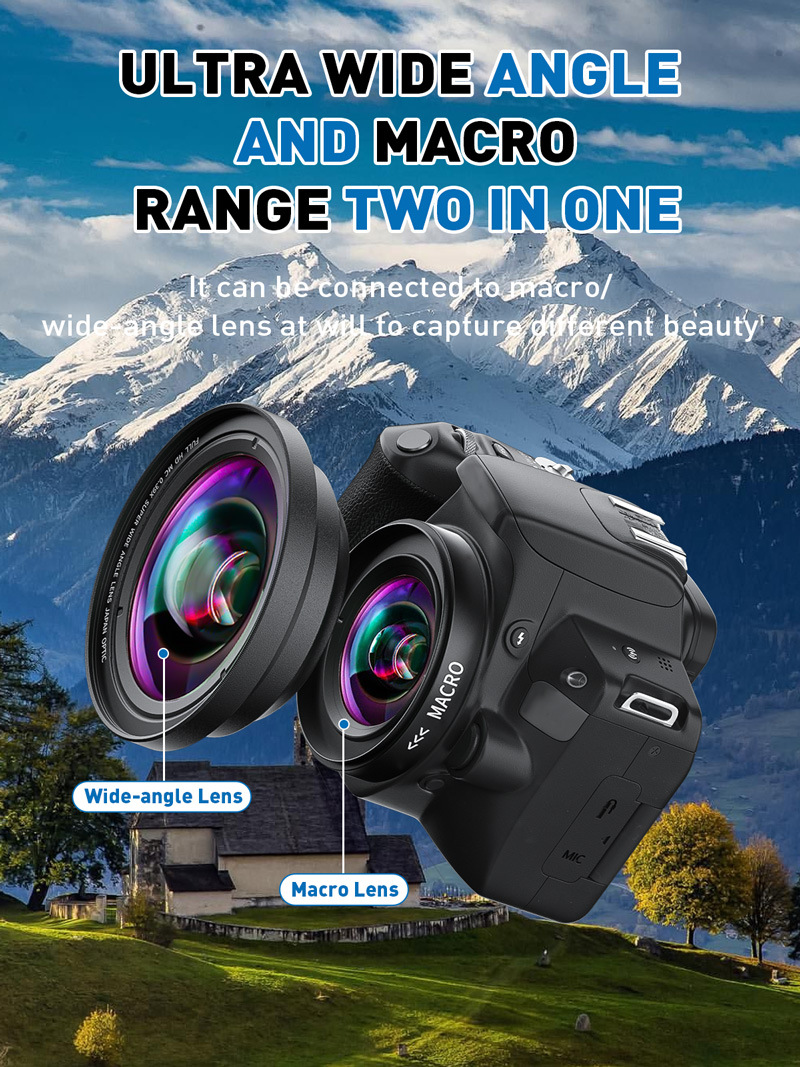 37/49/52мм беззеркальный объектив, UV72мм 0.39X широкоугольный макро 2-в-1 с дополнительными фильтрами