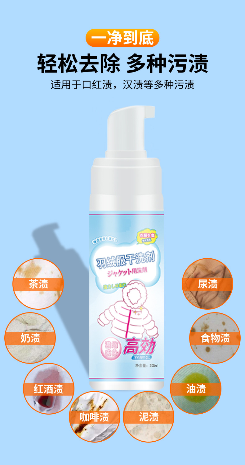 Пена для стирки курток из пуха, безводное средство для чистки, удаление стойких пятен, моющее средство для одежды