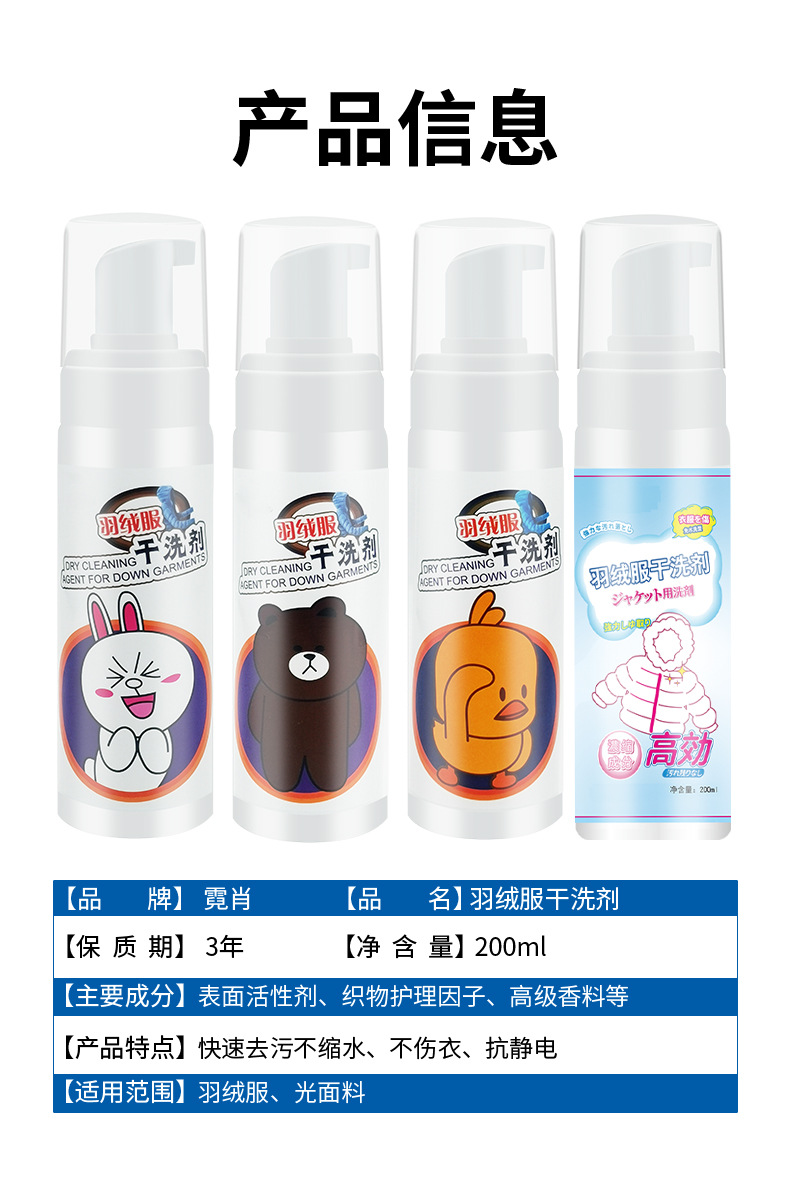 ![]() | 200ML down jacket dry cleaning agent [with pump head]] | ¥1.3 / ≈ 16 ₽ | 91355 | 5223054600244 |