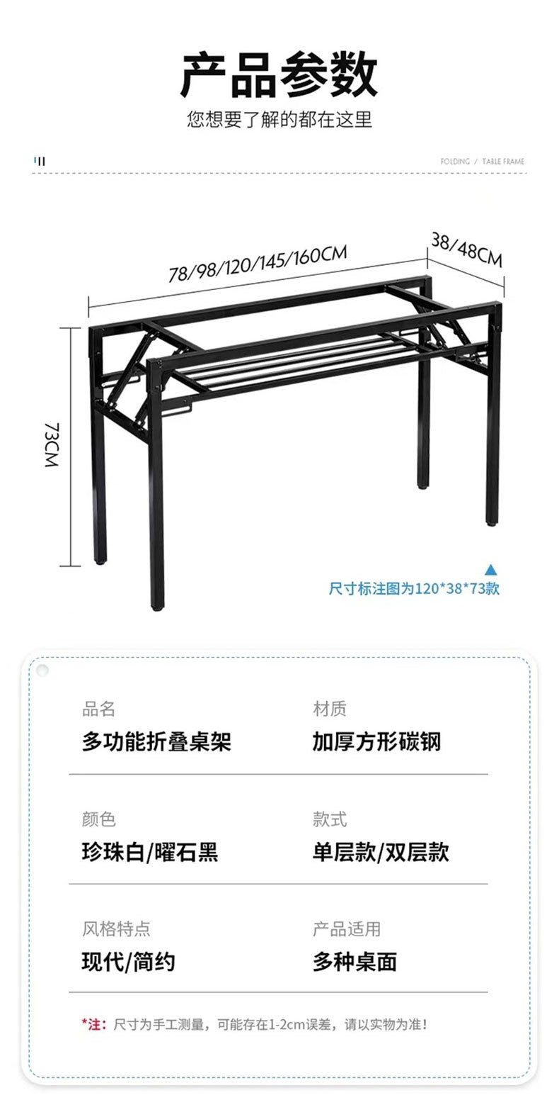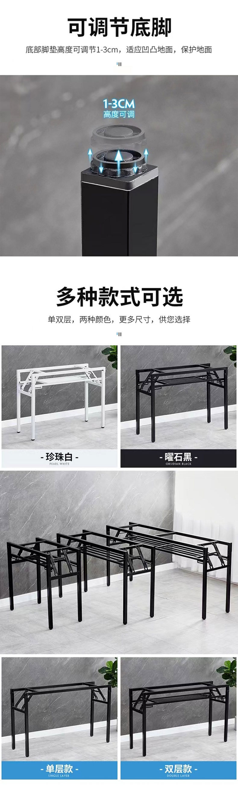 Весенний стол, белые ножки, однополочный кронштейн, черные ножки, двухслойный складной стол, простой складной стол