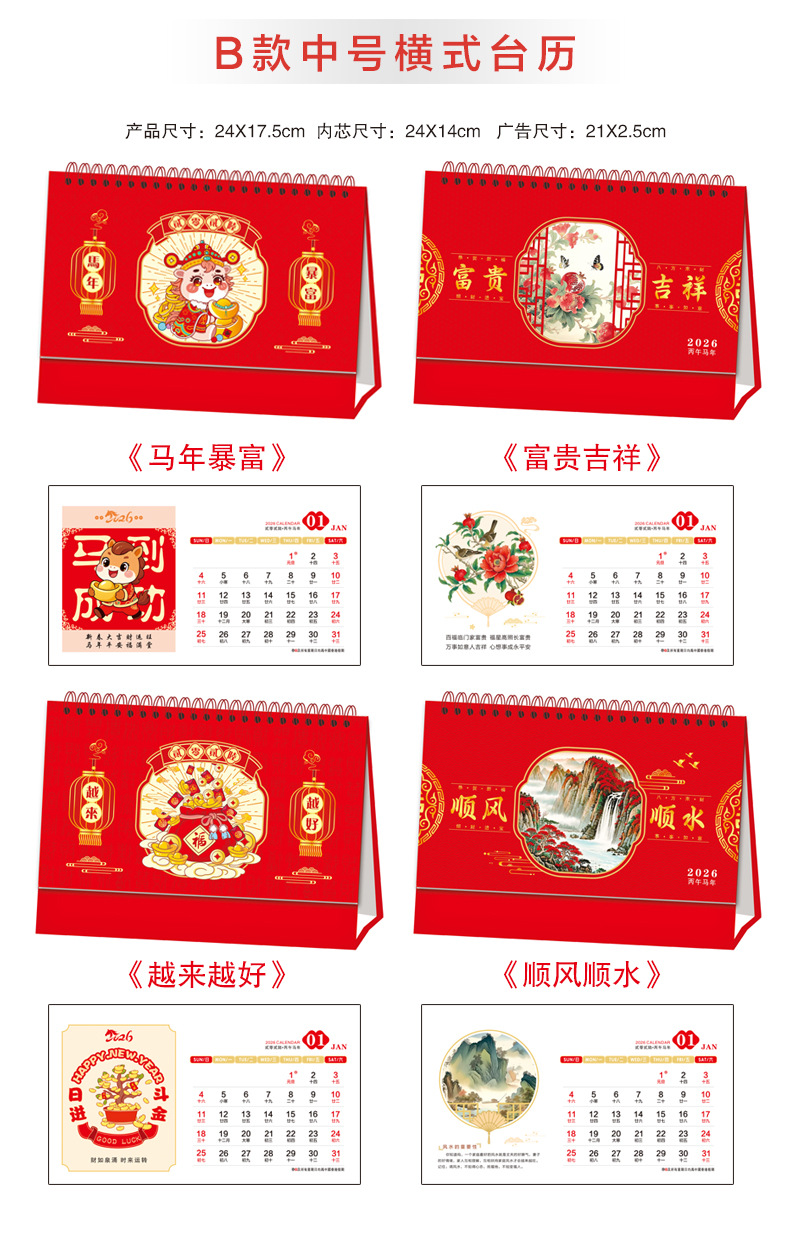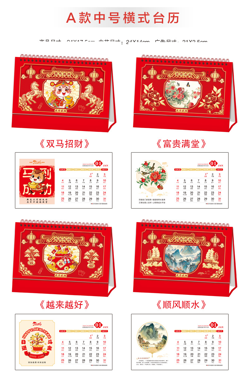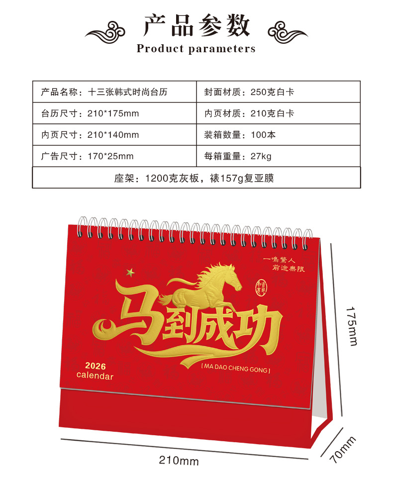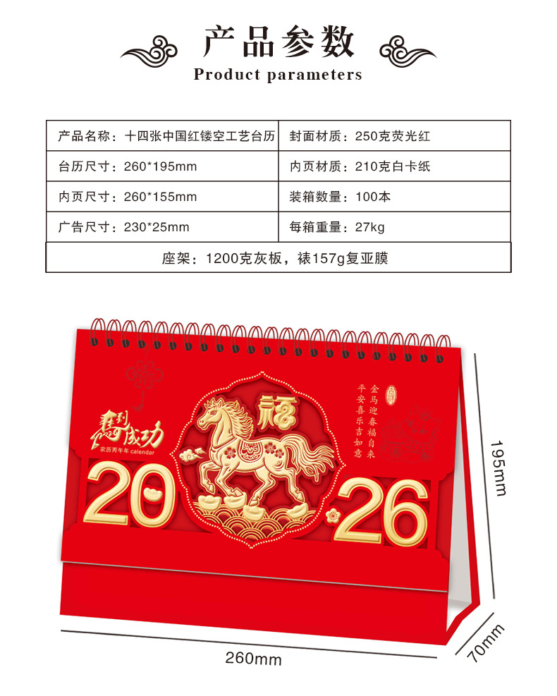 Настольный календарь на 2026 год Лошади с рекламным горячим тиснением, большой, средний и крупный горизонтальный пустотелый крафт, индивидуальная печать для предприятий, высота подставки