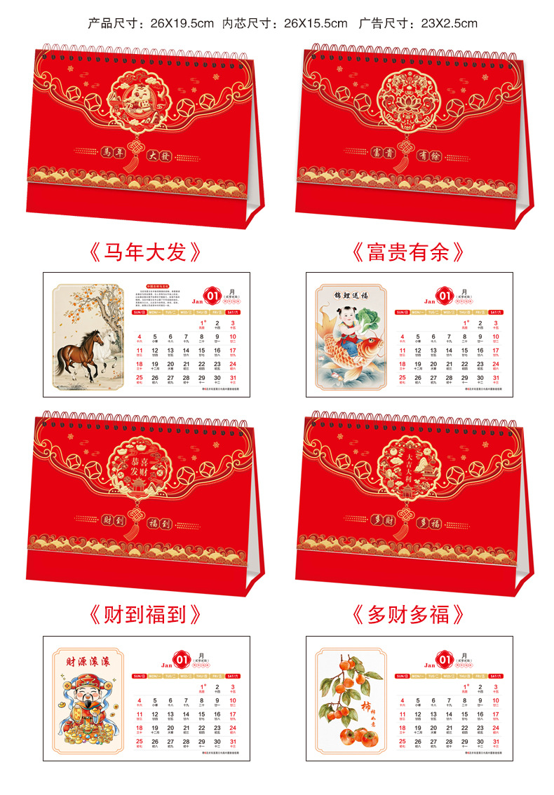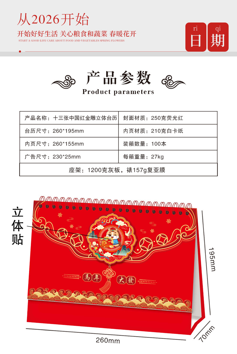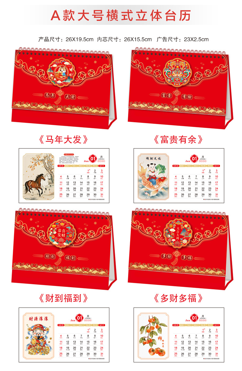 Настольный календарь на 2026 год Лошади с рекламным горячим тиснением, большой, средний и крупный горизонтальный пустотелый крафт, индивидуальная печать для предприятий, высота подставки