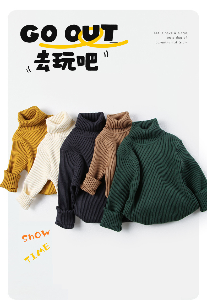 Новый вязаный пуловер с высоким воротником для мальчиков и девочек, зимняя одежда