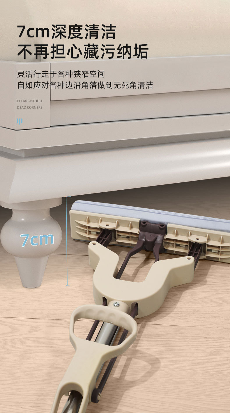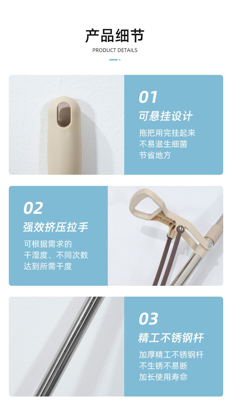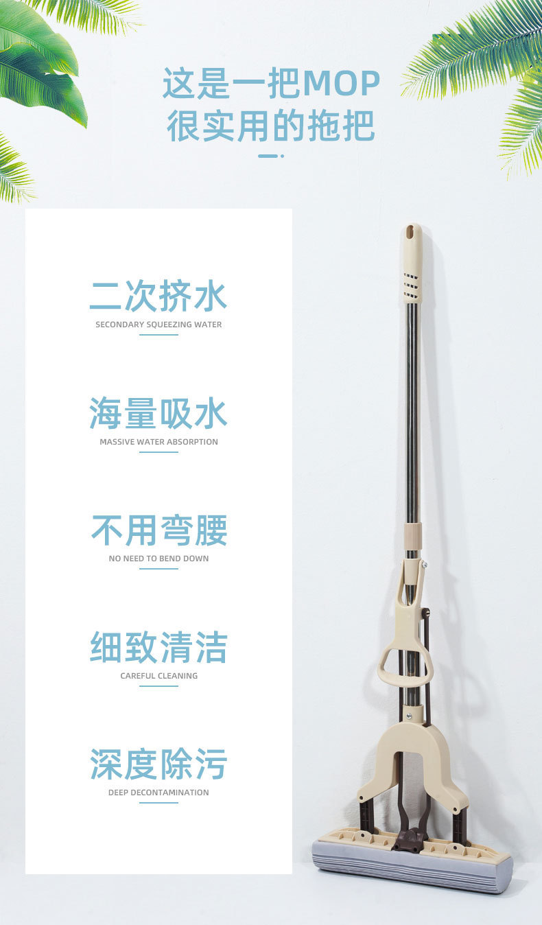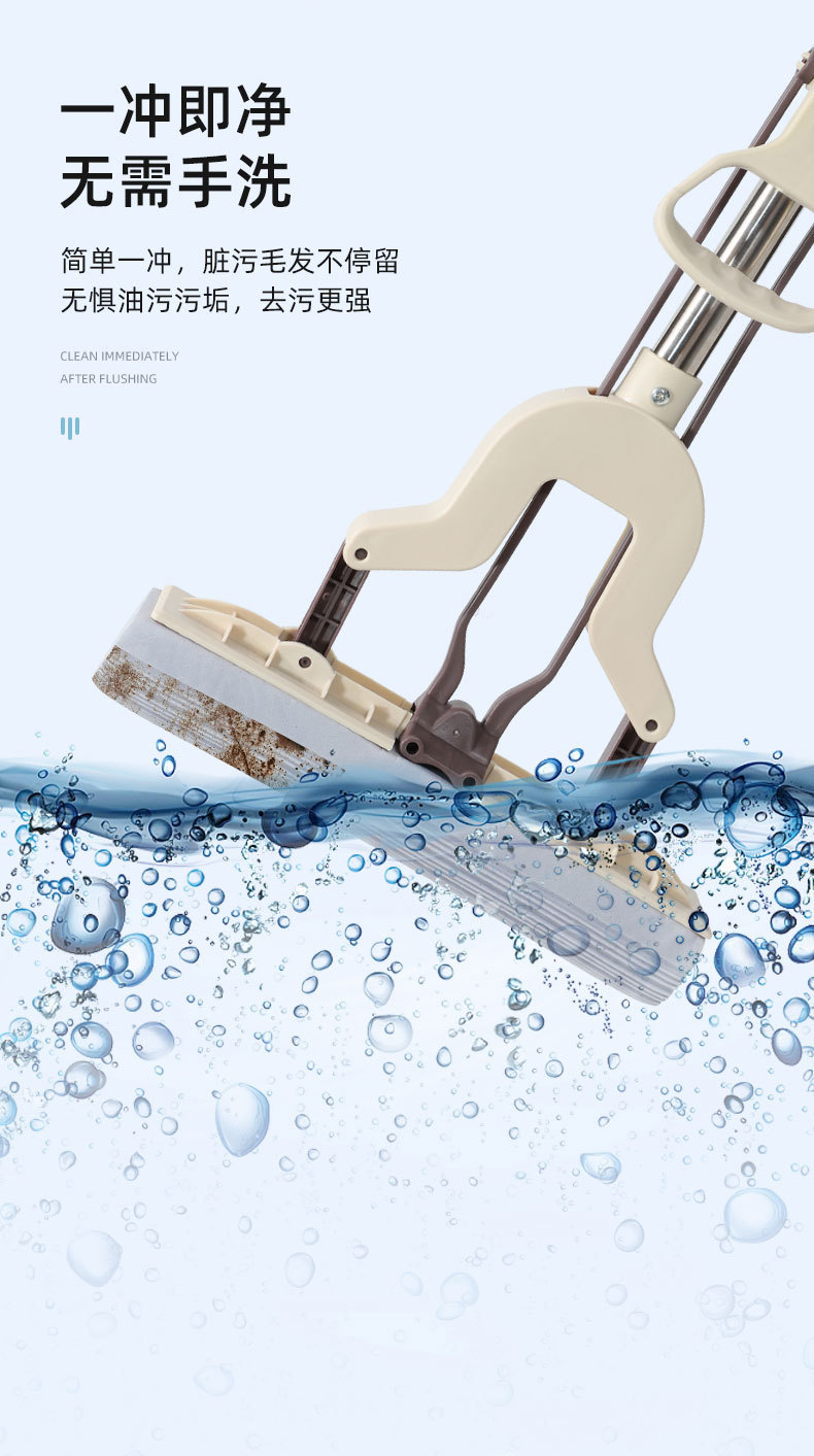 海绵拖把家用不锈钢28厘米对折胶棉拖把可伸缩拆卸懒人拖把免手洗