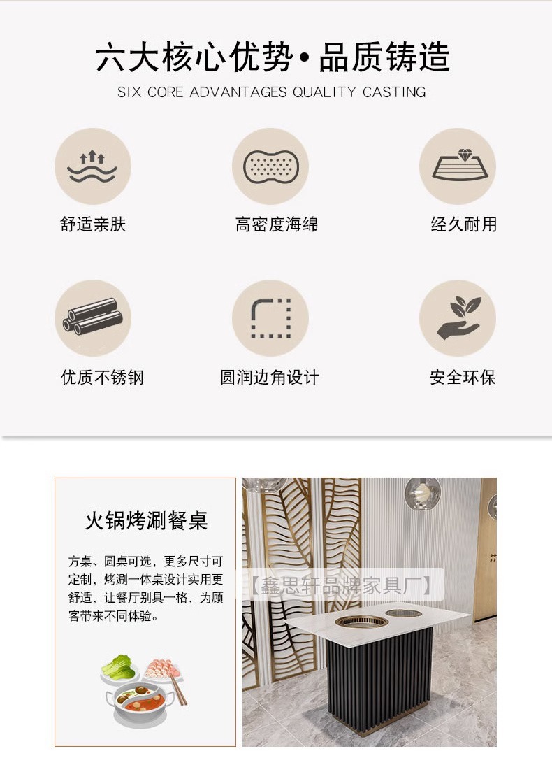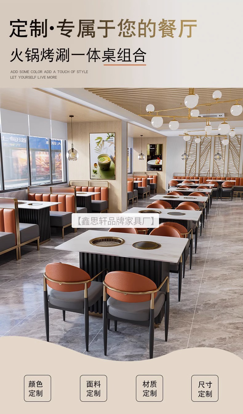 Коммерческий стол для барбекю из мраморной плиты, нержавеющая сталь, бесдымная индукционная плита, интегрированный стол для выпечки и мытья