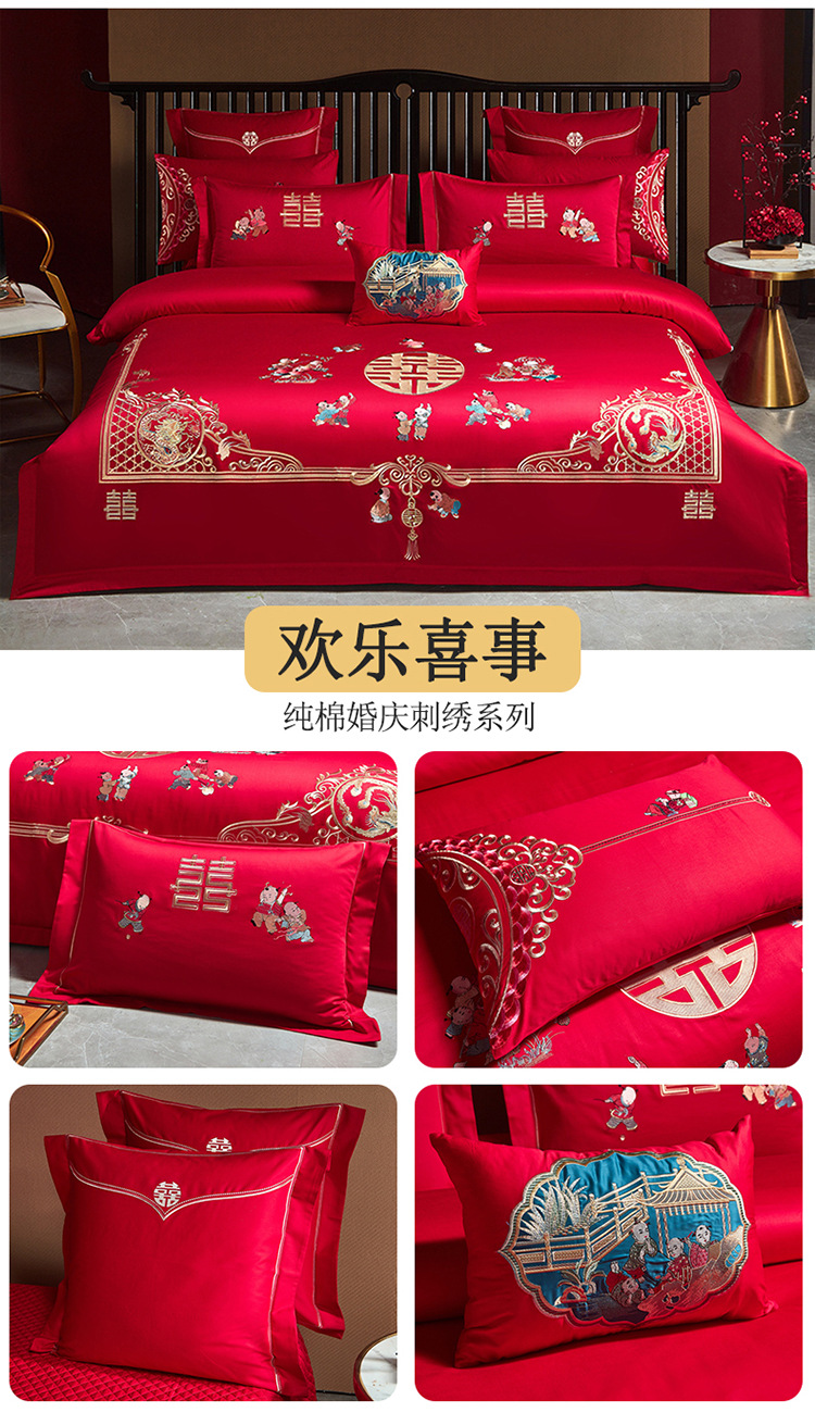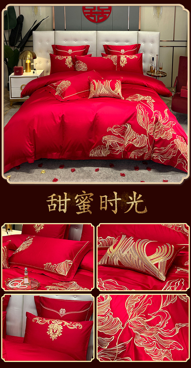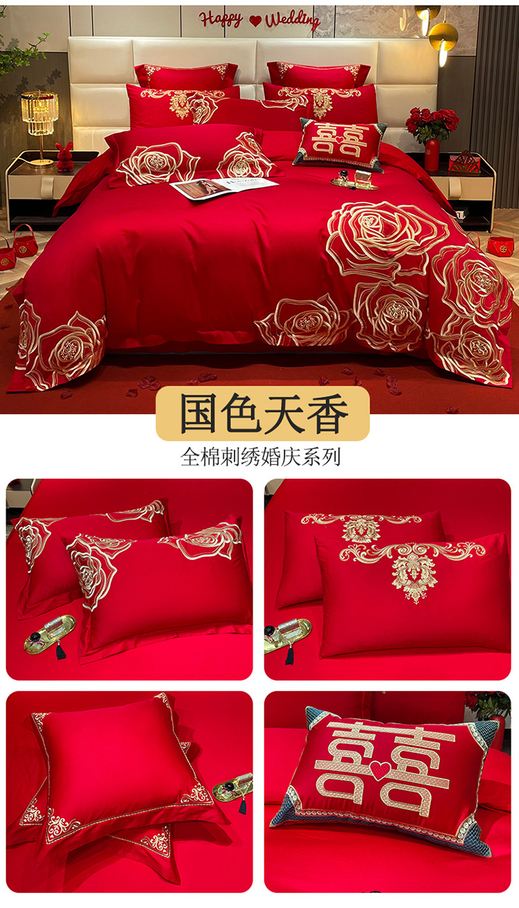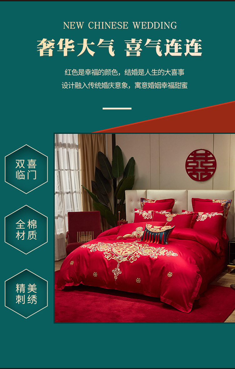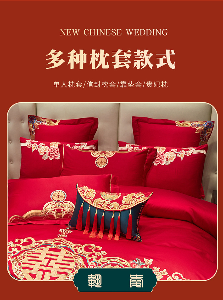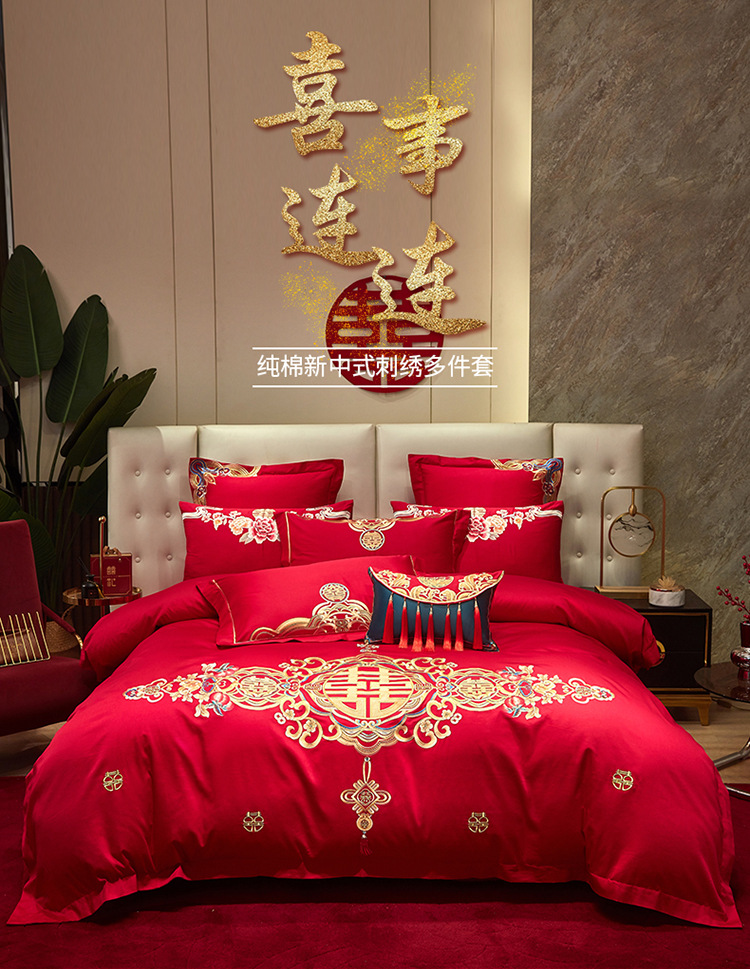Новый китайский свадебный комплект из четырех предметов, ярко-красный, вышивка, свадебное приданое, восемь предметов с драконами и фениксами