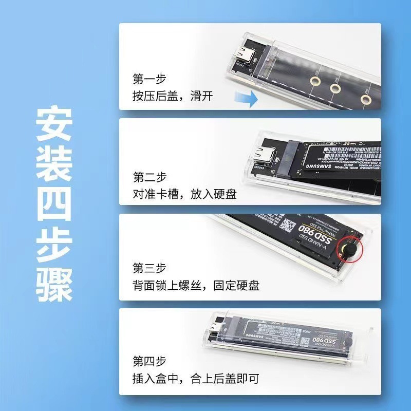 Прозрачная коробка для твердотельного диска M.2, NVME, мобильная, для ноутбука