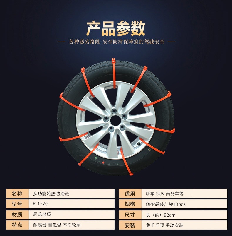 Модель Factory Direct sales, car anti-skid ribbon, wholesale tire anti-skid chain, safety emergency self-driving tour, winter anti-skid supplies, snow mud relief, tire ribbon