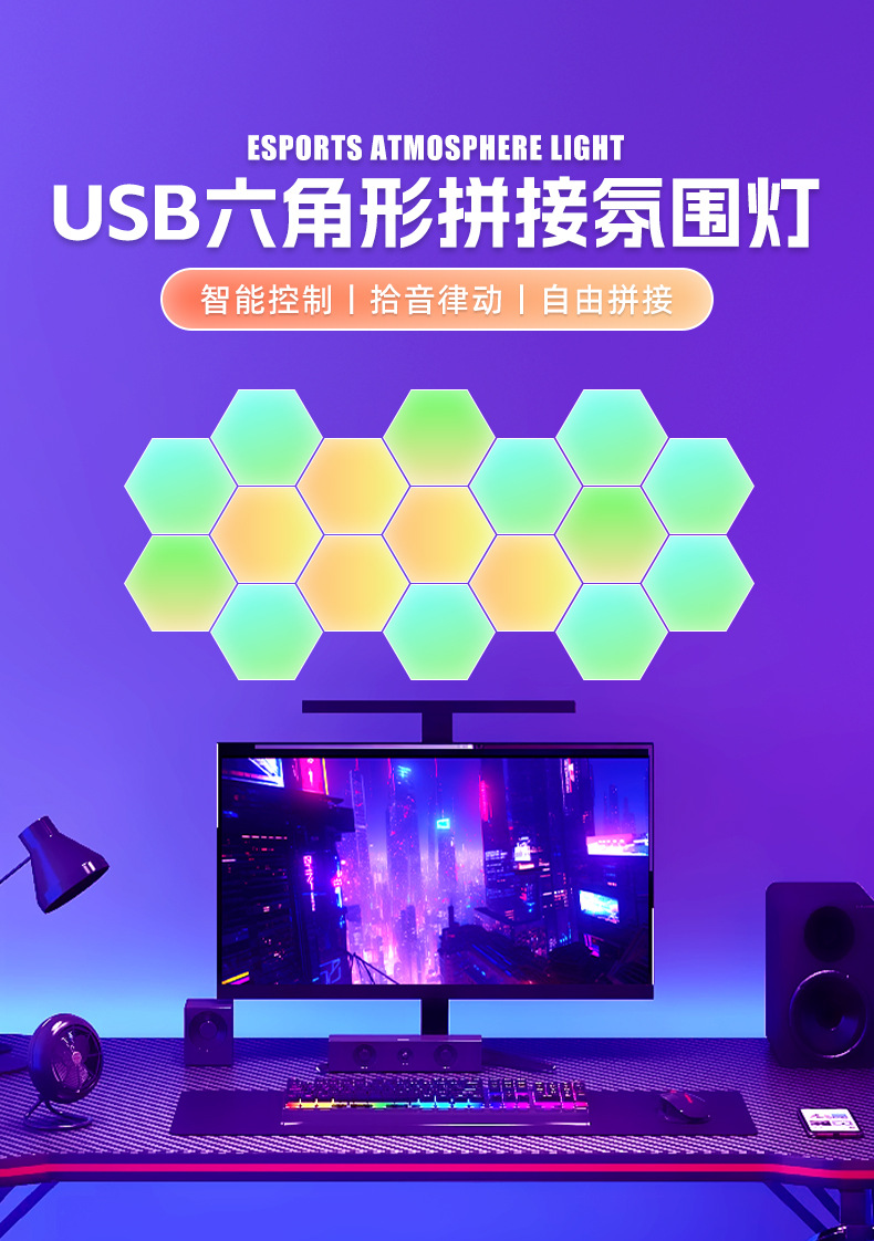 Игровая Лампа с USB E-Sports Атмосфера Свет Необычная Лампа Доска Свет Спальня Квантовая Лампа DIY Декоративная Лампа Внутренний Стенная Лампа Оптовая