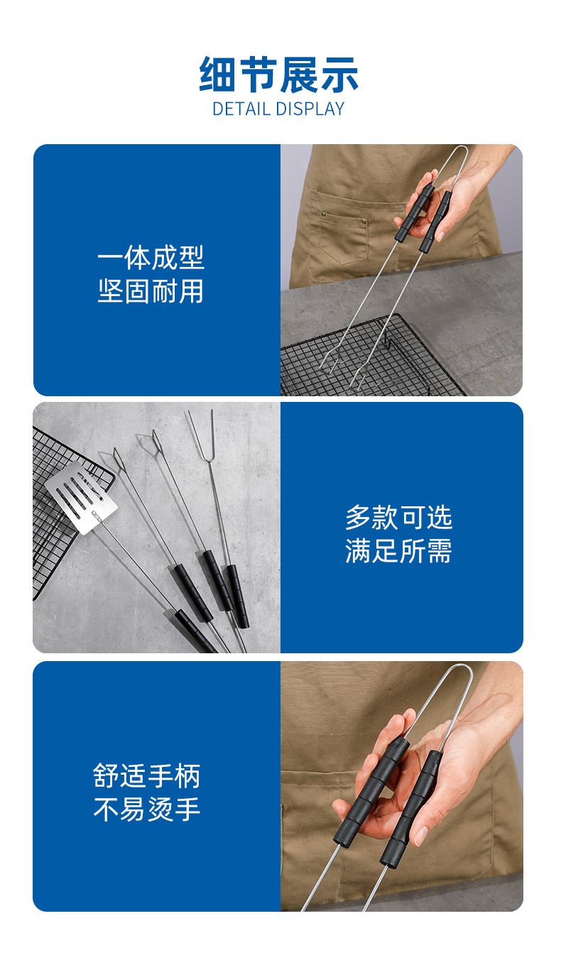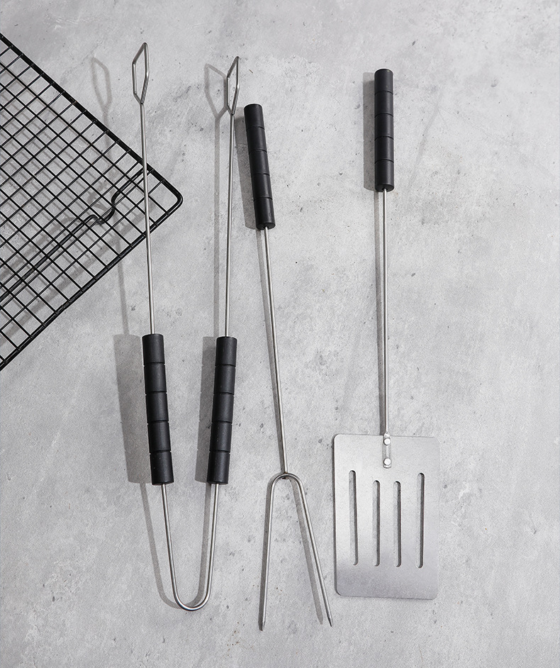 Набор барбекю из трех предметов с пластиковыми ручками и нержавеющей сталью для гриля на открытом воздухе