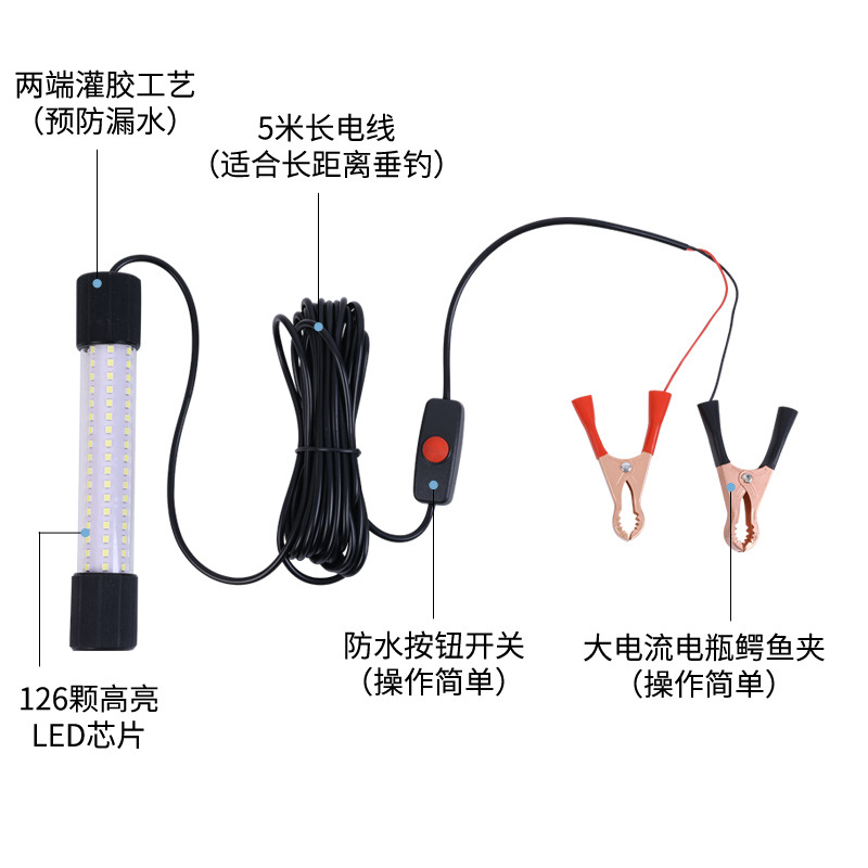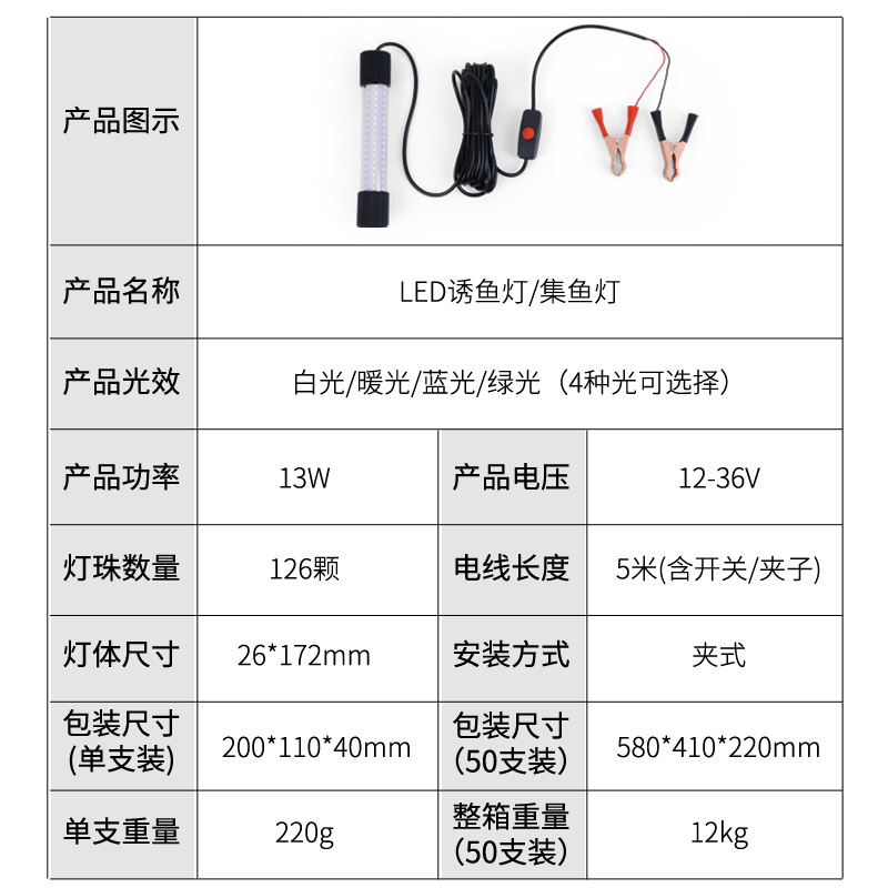Подводная лампа для ловли рыбы 12V-24V, зеленый, белый, синий, желтый, ночная рыбалка