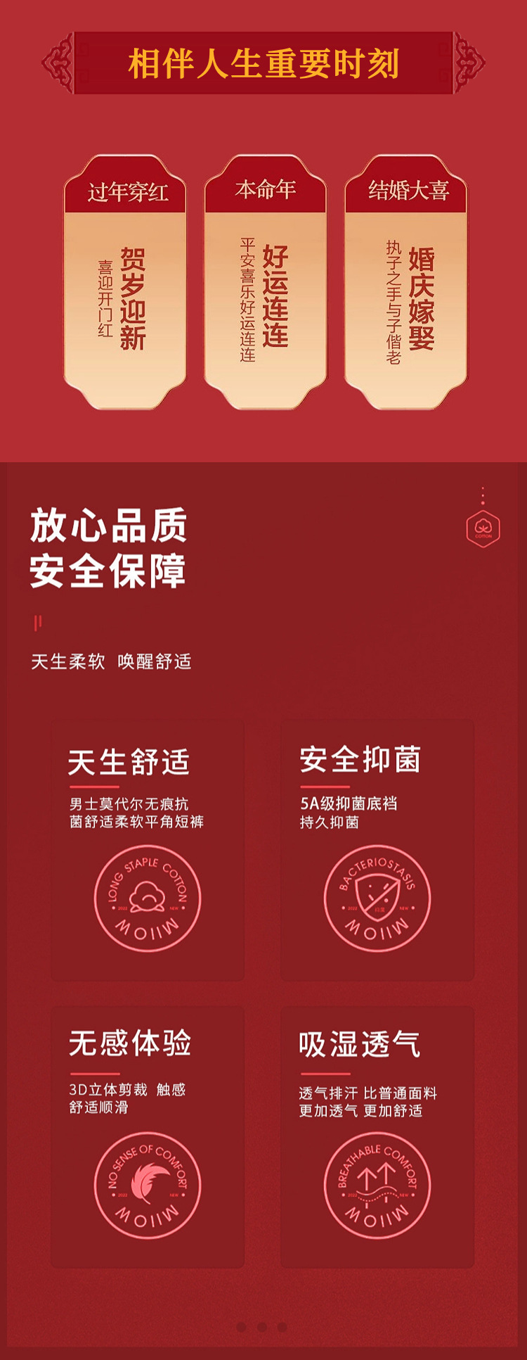 Оптовая продажа бесшовного нижнего белья для мужчин, красные, средней посадки, свадебные, модал, высокоэластичные, дышащие, влаговпитывающие, антибактериальные боксёры