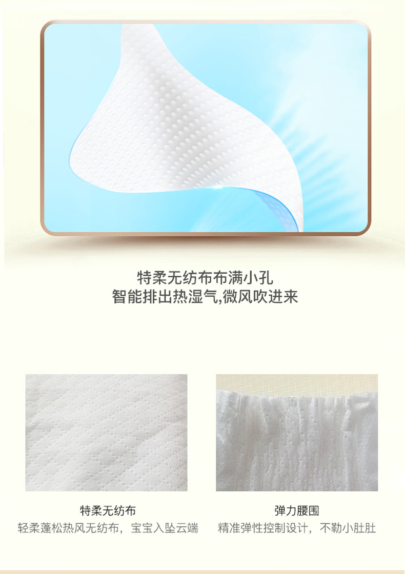 diaper characteristics breathable, Thin and light, Dry and cool, Super absorbent