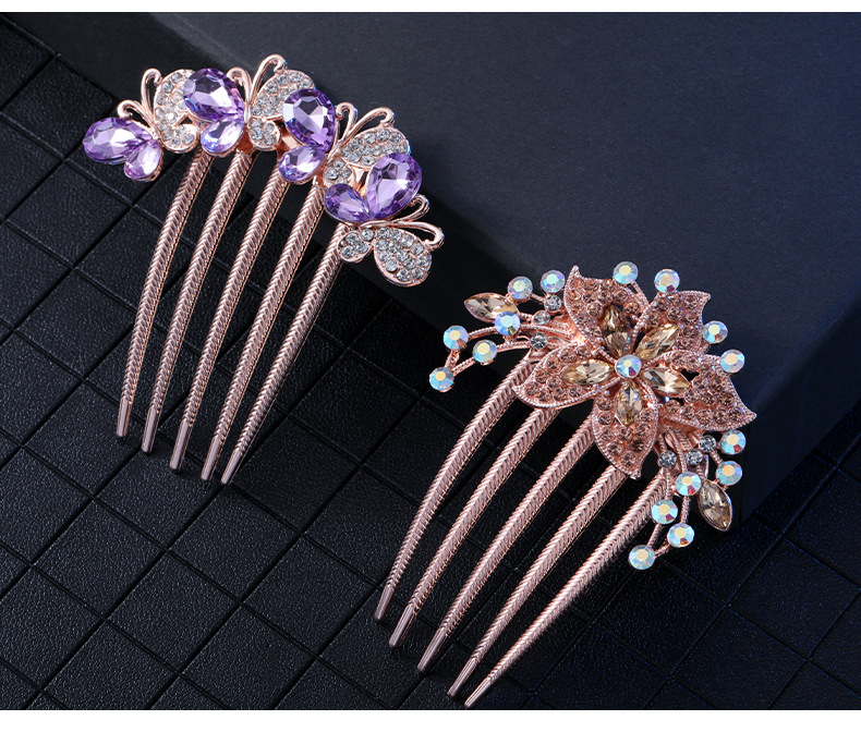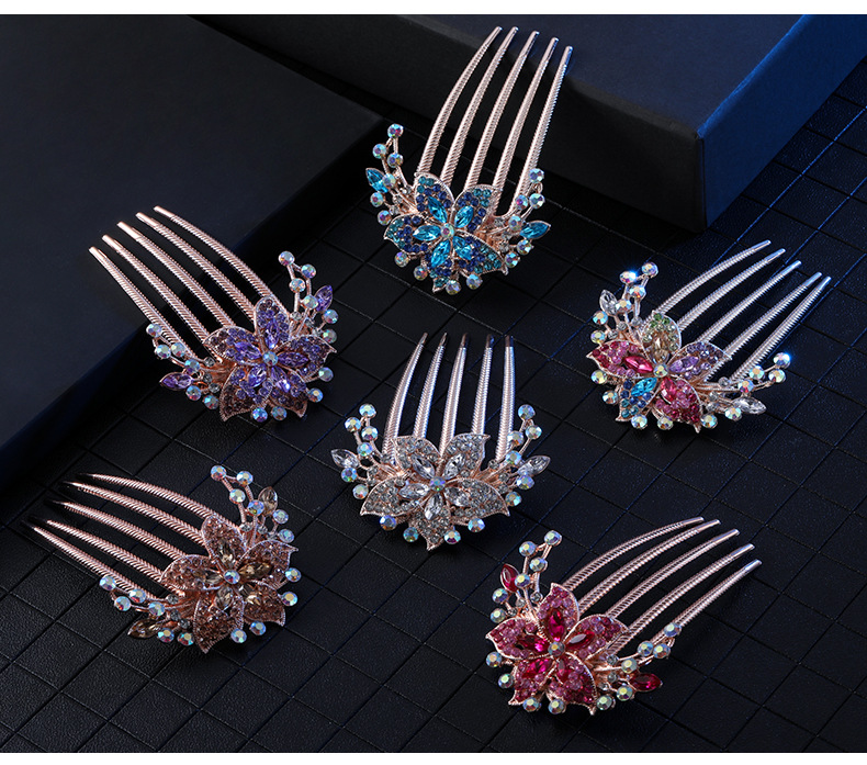 Алюминиевый зажим с цветными стразами, корейские новые стильные аксессуары для волос, кристаллическая пятизубчатая расческа, заколка для хвоста, зажим для волос, оптовая продажа
