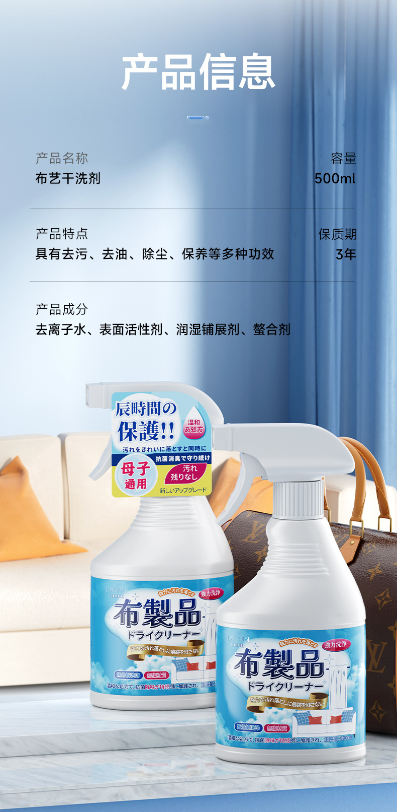 ![]() | Fabric dry cleaning agent 500ml*1 bottle | 3шт: ¥5.30, 300шт: ¥5.00, 3000шт: ¥4.50 | 283118 | 5113954225264 |
