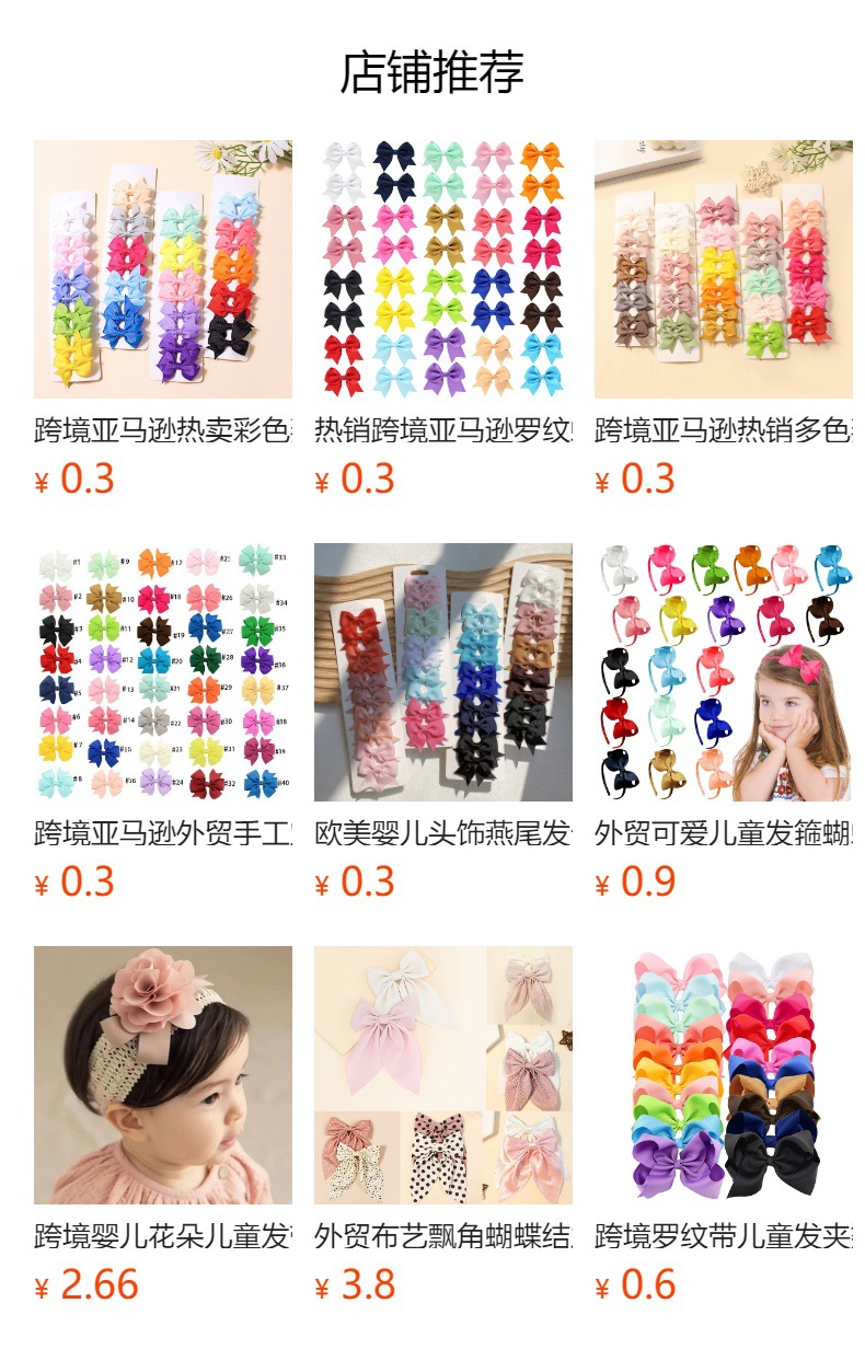 【名称】40/套欧美亚马逊纯色蝴蝶结儿童发夹套装女童发卡罗纹带皮筋头饰