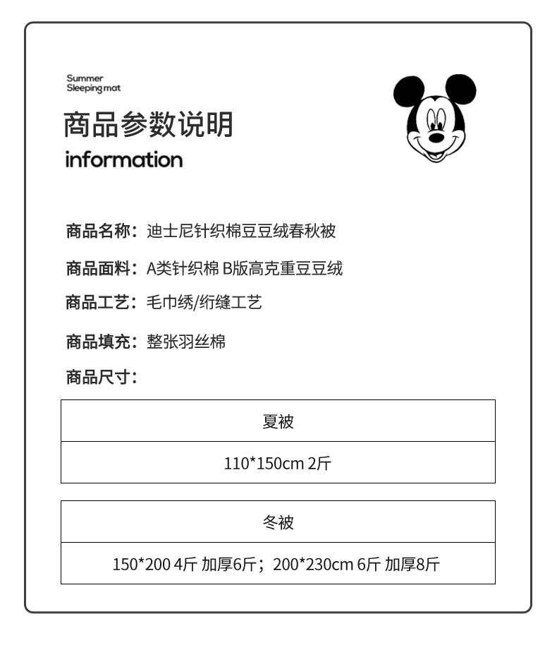 ![]() | Happy Mickey | 200 * 230cm (6kg) | ¥77.0 / ≈ 937 ₽ | 9912 | 5281313210010 | |