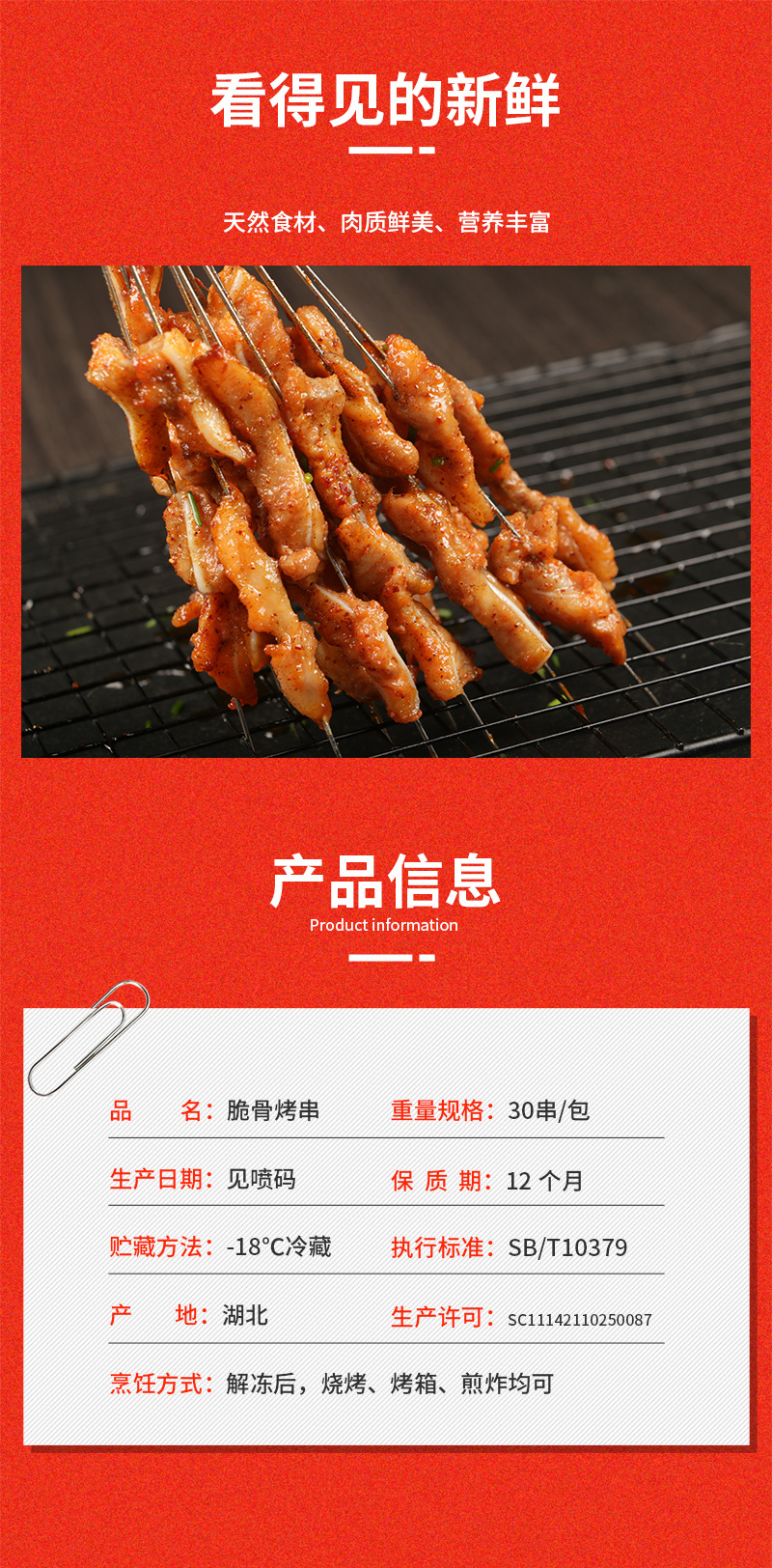 Хрустящие шашлыки из костей, стальные шашлыки, полуфабрикаты для барбекю и жарки, коммерческие ингредиенты, 30 шашлыков из острых маленьких хрустящих костей свинины